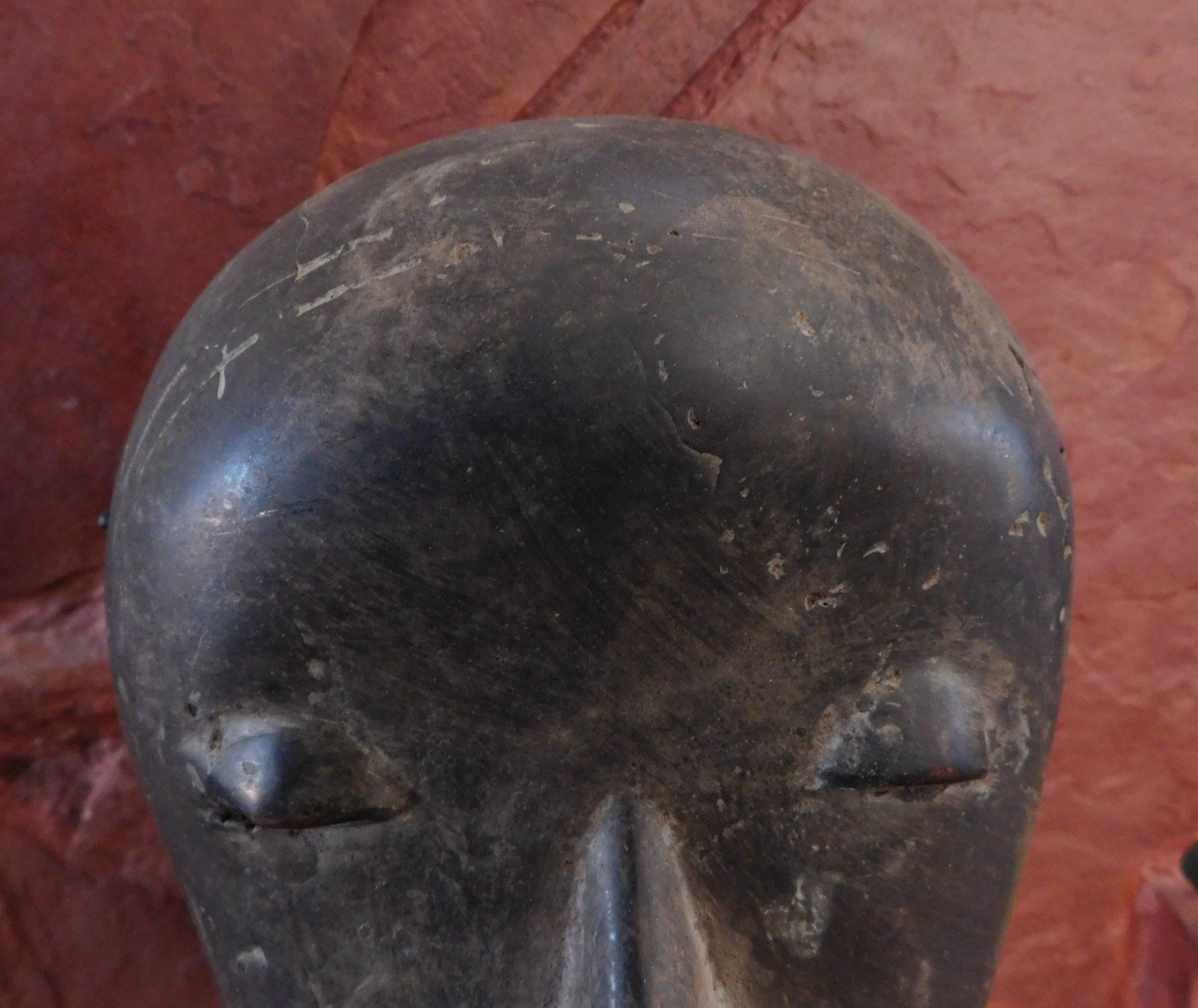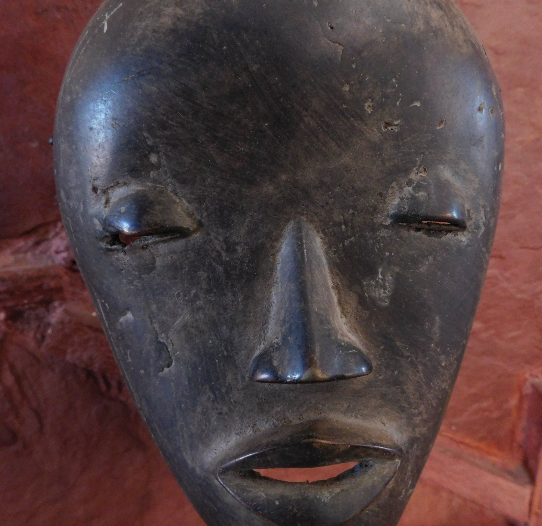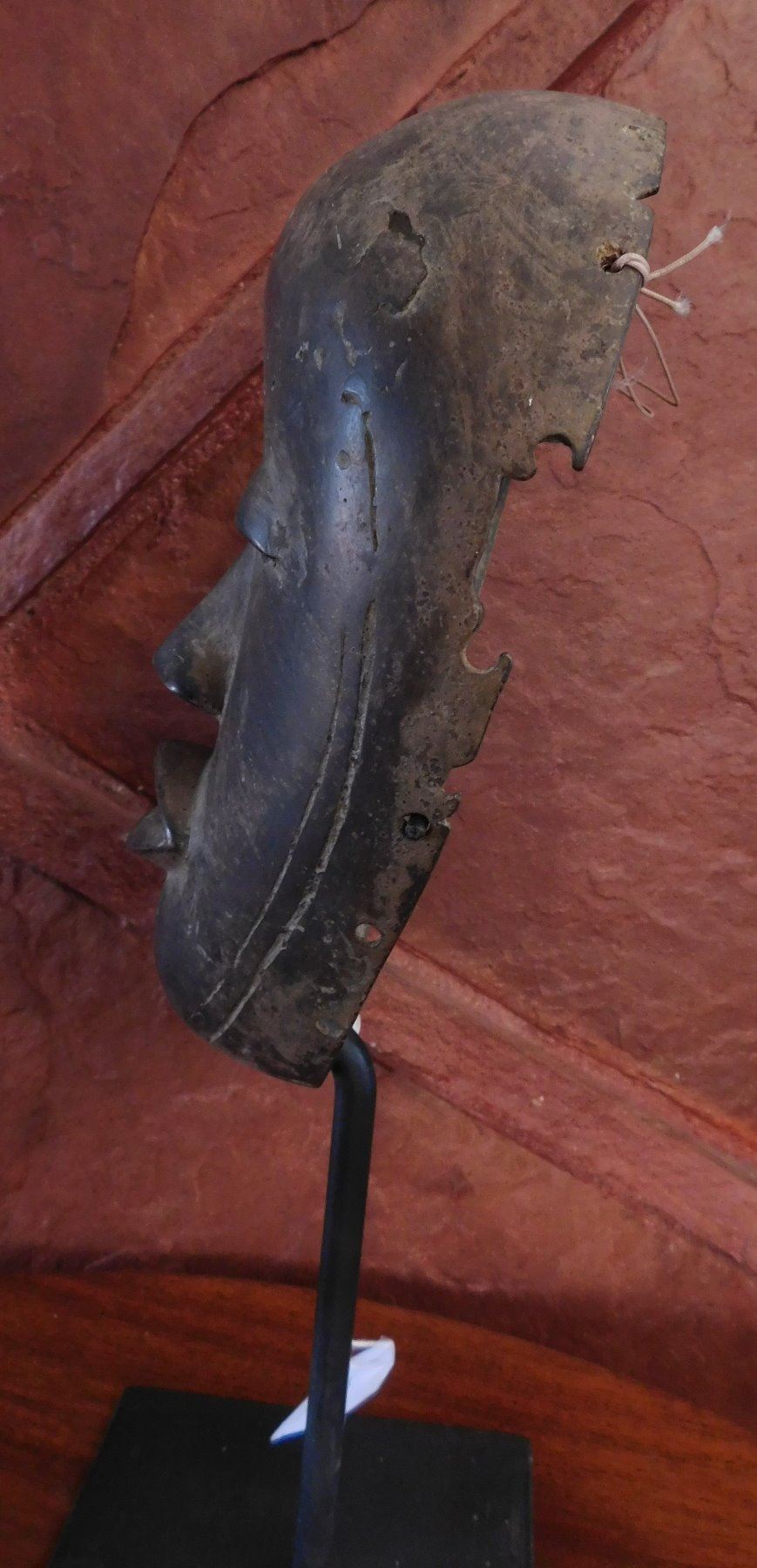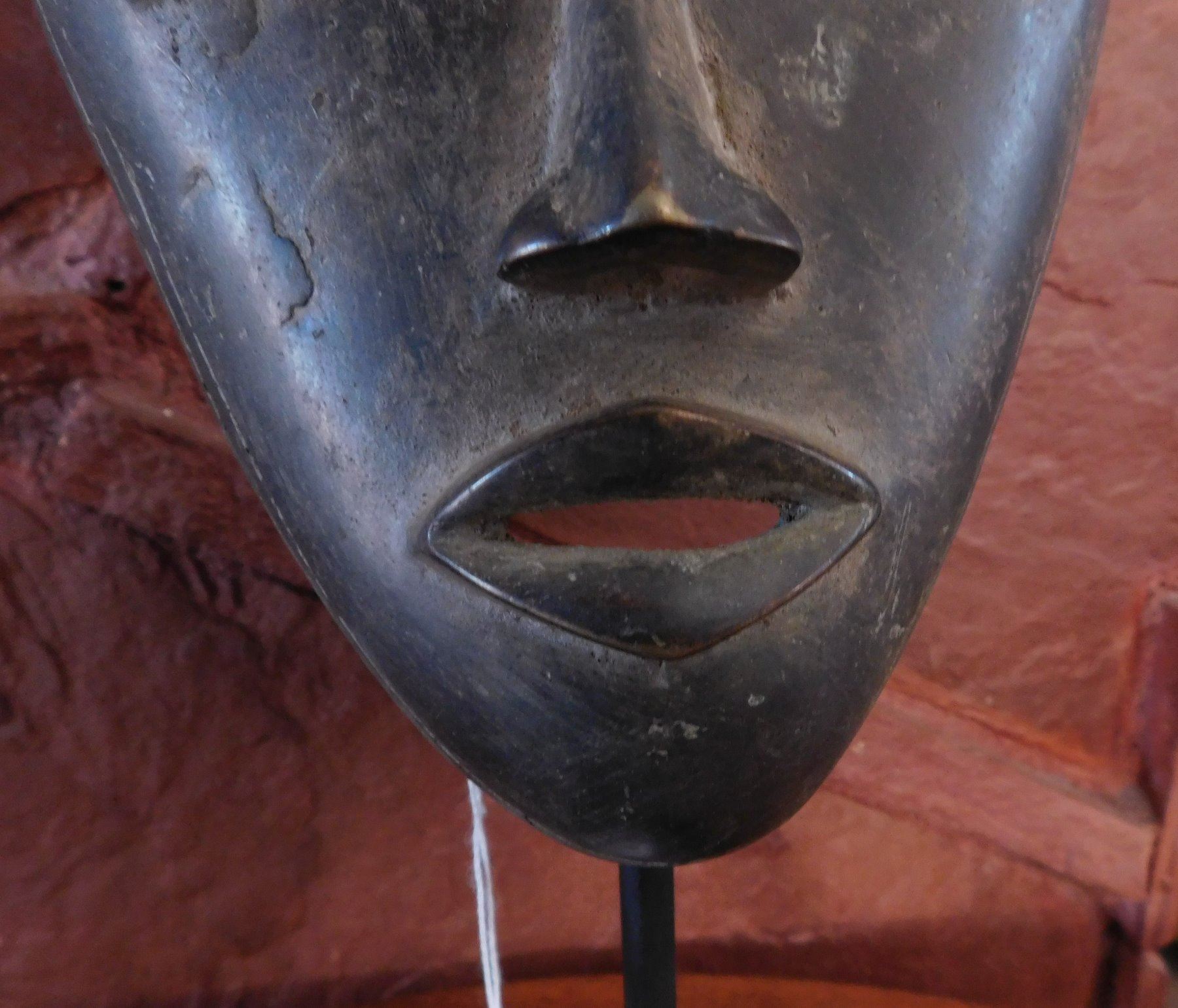 Dan Bronze Mask w/Stand, 18th century item. Made of bronze, the item measures 10" x 8" x 3". Ivory Coast. Very fine and important African mask. Condition: Some minor damage to side, see images. Shipping: $30.00 w/insurance and signature.