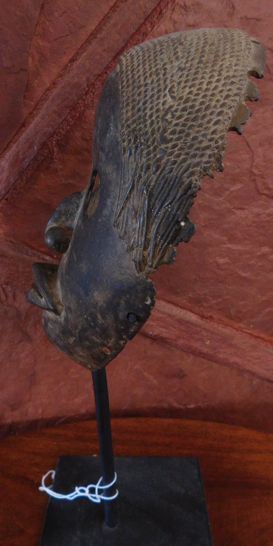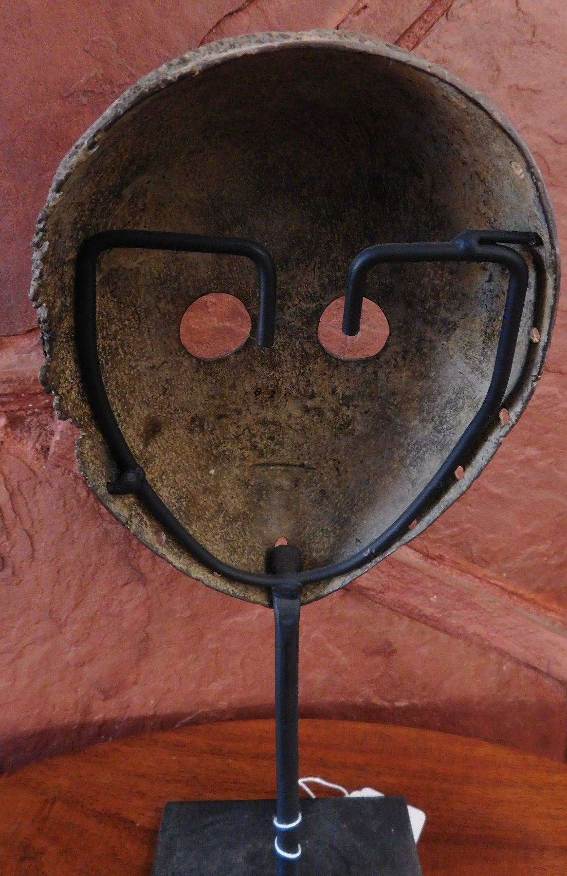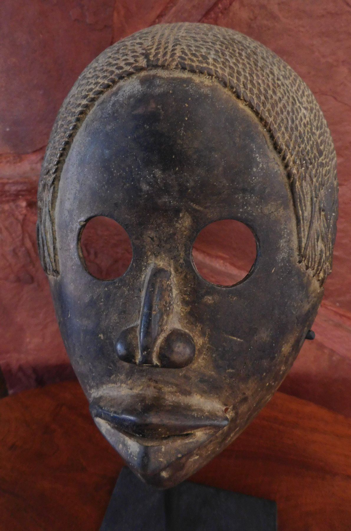 Dan Bronze Mask w/Stand, 18th century item. Made of bronze, the item measures 8 1/2" x 5 1/2" x 2 1/2". Ivory Coast. Very fine and important African mask. Condition: Some minor damage, see images. Shipping: $30.00 w/insurance and signature.