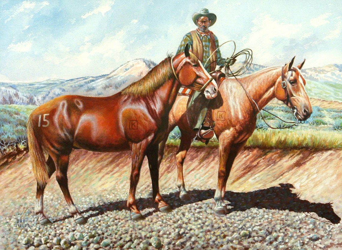 Dan Cody Muller (1889-1977). Return From The Rodeo. 18" x 24" watercolor. Signed lower left: DAN MULLER. (est. $1,500-2,500). Provenance: The S. George & Helen Binson Estate, donated to the Cheyenne Frontier Days Old West Museum (Cheyenne, WY).. CONDITION REPORTS: www.auctioninsantafe.com/docs/cr2012.pdf