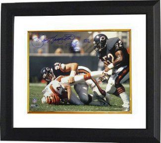 Dan Hampton was drafted by the Bears in the first round of the 1979 draft. In 1979 he was voted All-Rookie by the Pro Football Writers Association. The following year he was a Second-team All-Pro selection and was voted to his first Pro Bowl after recording 11½ sacks which lead the Bears. He was selected to four Pro Bowls and was a key defensive member of the Bears' Super Bowl XX win against the New England Patriots in 1985. Hampton was selected to the Pro Football Hall of Fame in 2002. He has hand signed this Chicago Bears 8x10 Photo with dual HOF 2002 & SB XX Champs inscriptions. Certificate of Authenticity from Athlon Sports. Custom White Mat and Premium Black Frame as shown.