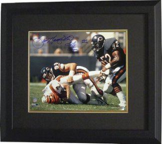 Dan Hampton was drafted by the Bears in the first round of the 1979 draft. In 1979 he was voted All-Rookie by the Pro Football Writers Association. The following year he was a Second-team All-Pro selection and was voted to his first Pro Bowl after recording 11½ sacks which lead the Bears. He was selected to four Pro Bowls and was a key defensive member of the Bears' Super Bowl XX win against the New England Patriots in 1985. Hampton was selected to the Pro Football Hall of Fame in 2002. He has hand signed this Chicago Bears 8x10 Photo with dual HOF 2002 & SB XX Champs inscriptions. Certificate of Authenticity from Athlon Sports. Custom Black Mat and Premium Black Frame as shown.