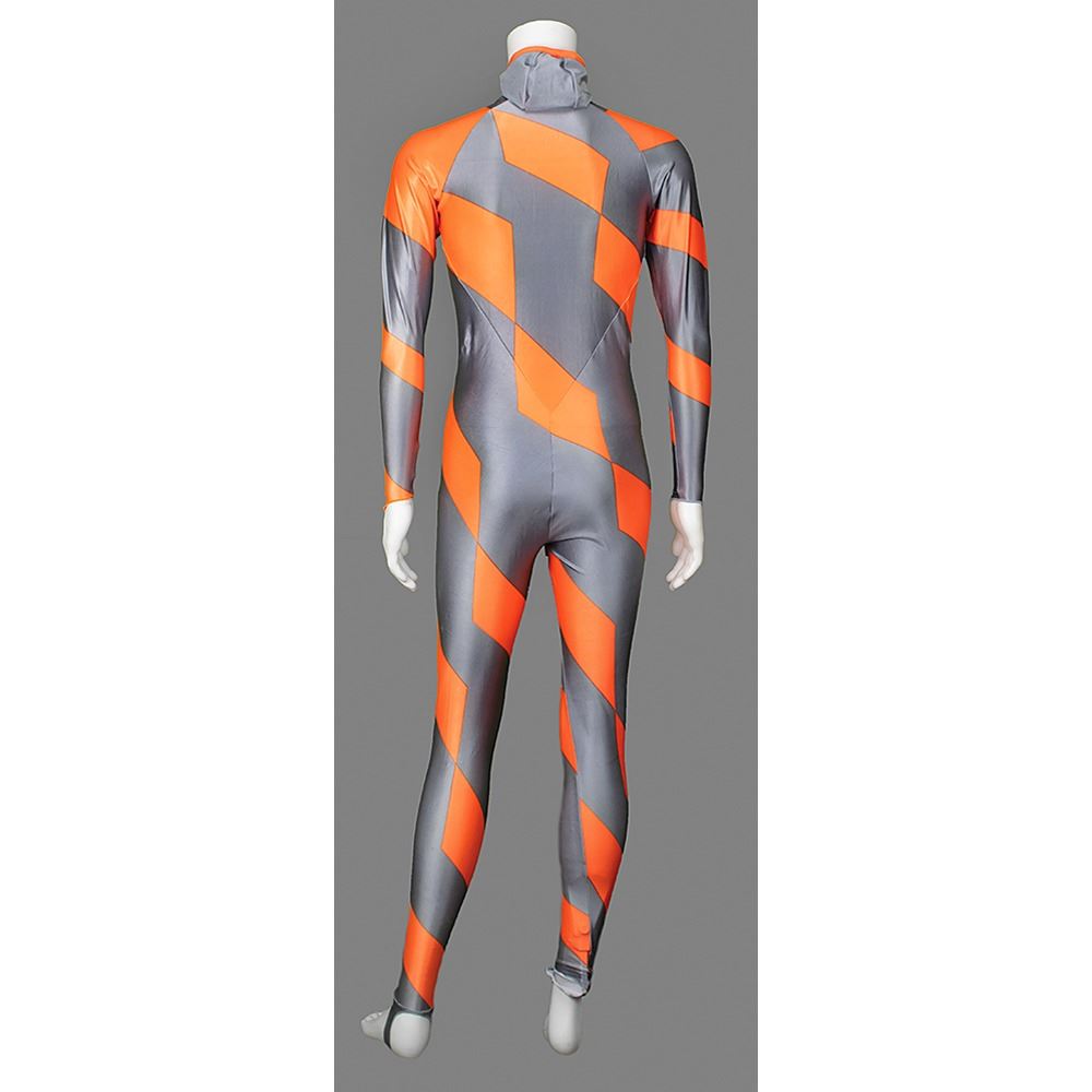 Dan Jansen's personally-owned Descente skinsuit that he famously wore in the 1000-meter speed skating race at the Calgary 1988 Winter Olympics, held on February 18th, at the University of Calgary's Olympic Oval. A recent gold medalist at the 1988 World Sprint Speed Skating Championships, Jansen entered the XV Olympiad as the favorite in both the 500 and 1000-meter events. He wore this offered gray-and-orange skinsuit in the latter event, starting the race with record-breaking speed before falling just past the 800-meter mark. Jansen also fell in the 500-meter race, collapses which were directly attributed to the death of his 27-year-old sister, Jane Marie Beres, who had passed away from leukemia in the early hours of February 14th, the day of the 500-meter event. A photo of Jansen wearing the skinsuit is included with the lot. In fine, used condition