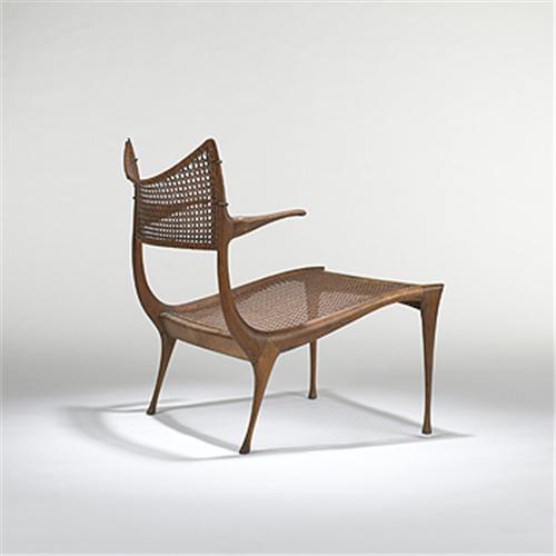 Dan Johnson prototype Gazelle lounge chair, model #30W Dan Johnson Studio USA/Italy, c. 1957 Italian walnut, cane, brass 23.25"w x 26"d x 28"h