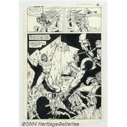 Dan Jurgens and Dan Adkins - Original Art for Warlord #91, Group of 15 pages (DC, 1985). Mike Grell's Warlord proved to be very popular with readers of the day, and enjoyed a relatively long run at DC. This excellent lot of pages 9-23 (essentially the last 2/3 of the issue), features strong sword-and-sorcery by Jurgens and Adkins, preserving the style Grell set for the series. These pages are replete with lovely ladies, swashbuckling action, and prehistoric creatures. If you're a fantasy fan, this is the lot for you! Pages measure 11" x 16" and are in excellent condition overall. Important notice: Heritage usually auctions material at the rate of 200-250 lots per hour. On some occasions eBay Live bid software or the Internet may not be able to keep up with the pace of the auction. We recommend placing a realistic absentee bid now as insurance to avoid disappointment. Occasionally the auctioneer may eliminate or reject an eBay Live bid, and the auctioneer may also reopen a lot after the close of the eBay live bidding (usually because we missed an audience bid), and may reject your bid even if it shows you as the winning bidder. By bidding via eBay Live, you agree that Heritage may award the lot to another bidder at its sole discretion under the circumstances described above or any other reasonable circumstances. Since eBay bids are not shown to us until we open the lot on the floor, we treat those bids just like floor bids. In most cases the floor responds before the eBay bid is presented to us, due to Internet lag time, so for consistency we have made it a policy that floor bids are always considered first over tie eBay live bids. Also please note that all Heritage lots purchased through eBay Live carry a 20% Buyer's Premium. Please make sure you read the Terms and Conditions before you bid.