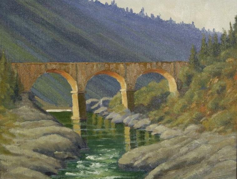 Dan MacInnis, Bridge Over the American, Oil on Canvas on Board.