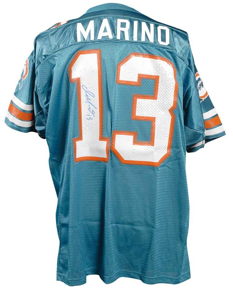 Official Wilson Miami Dolphins football jersey signed in blue felt tip on the number on the back. In fine condition. Pre-certified Steve Grad/PSA/DNA and RRAuction COA.