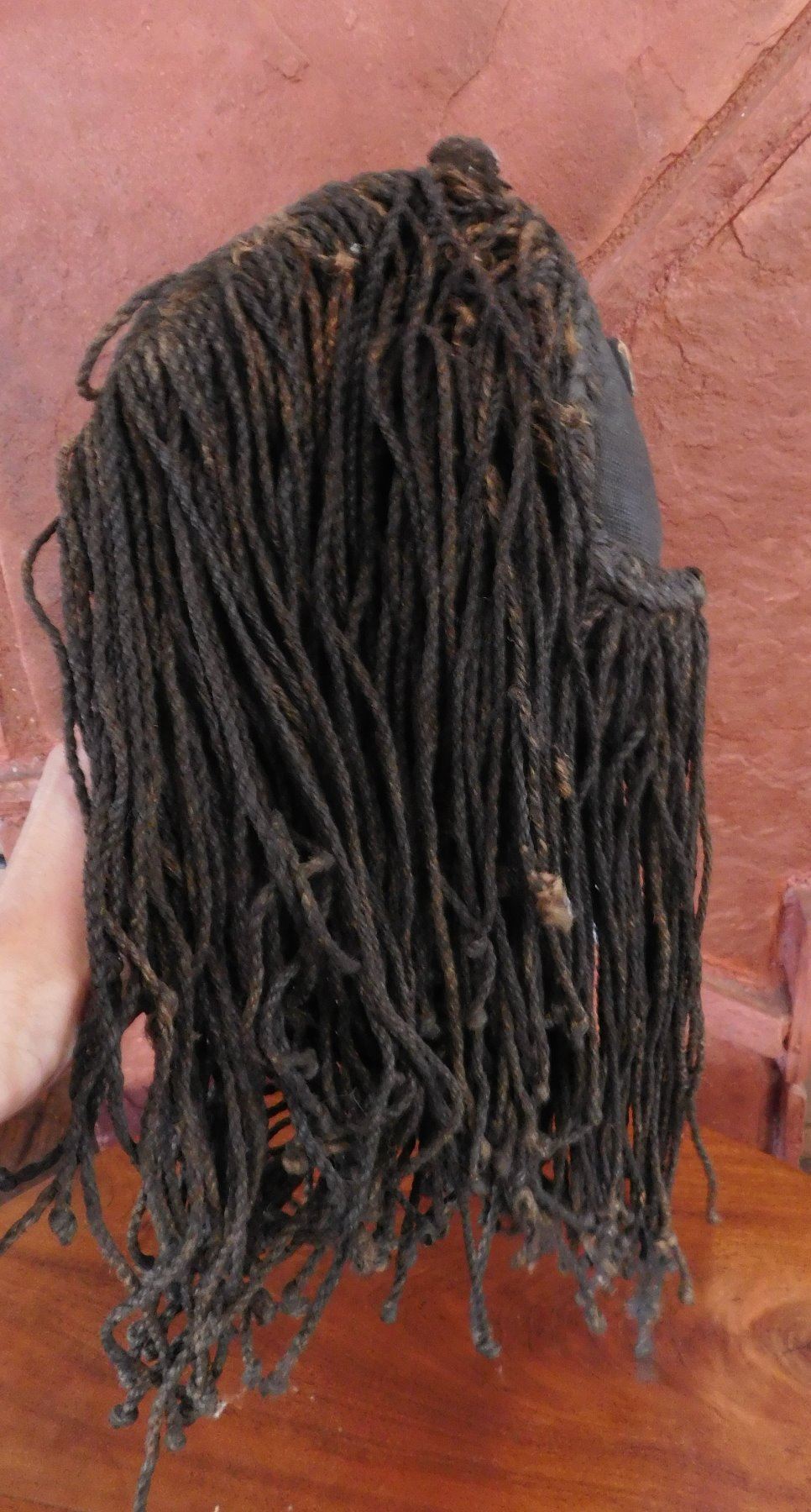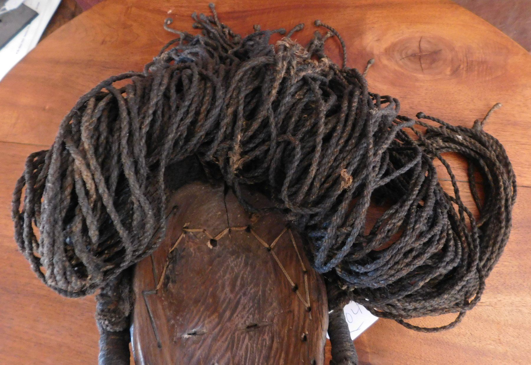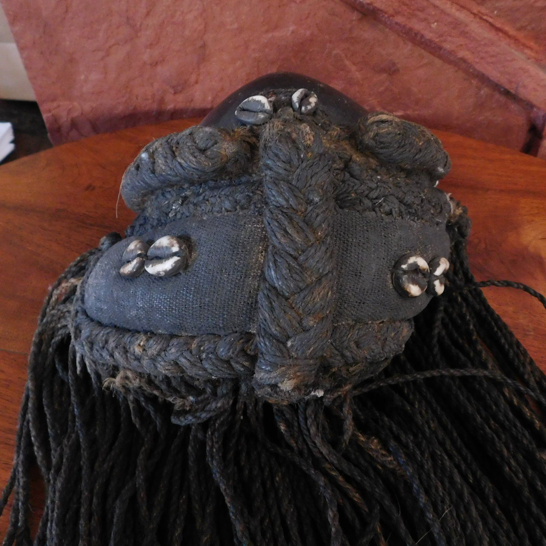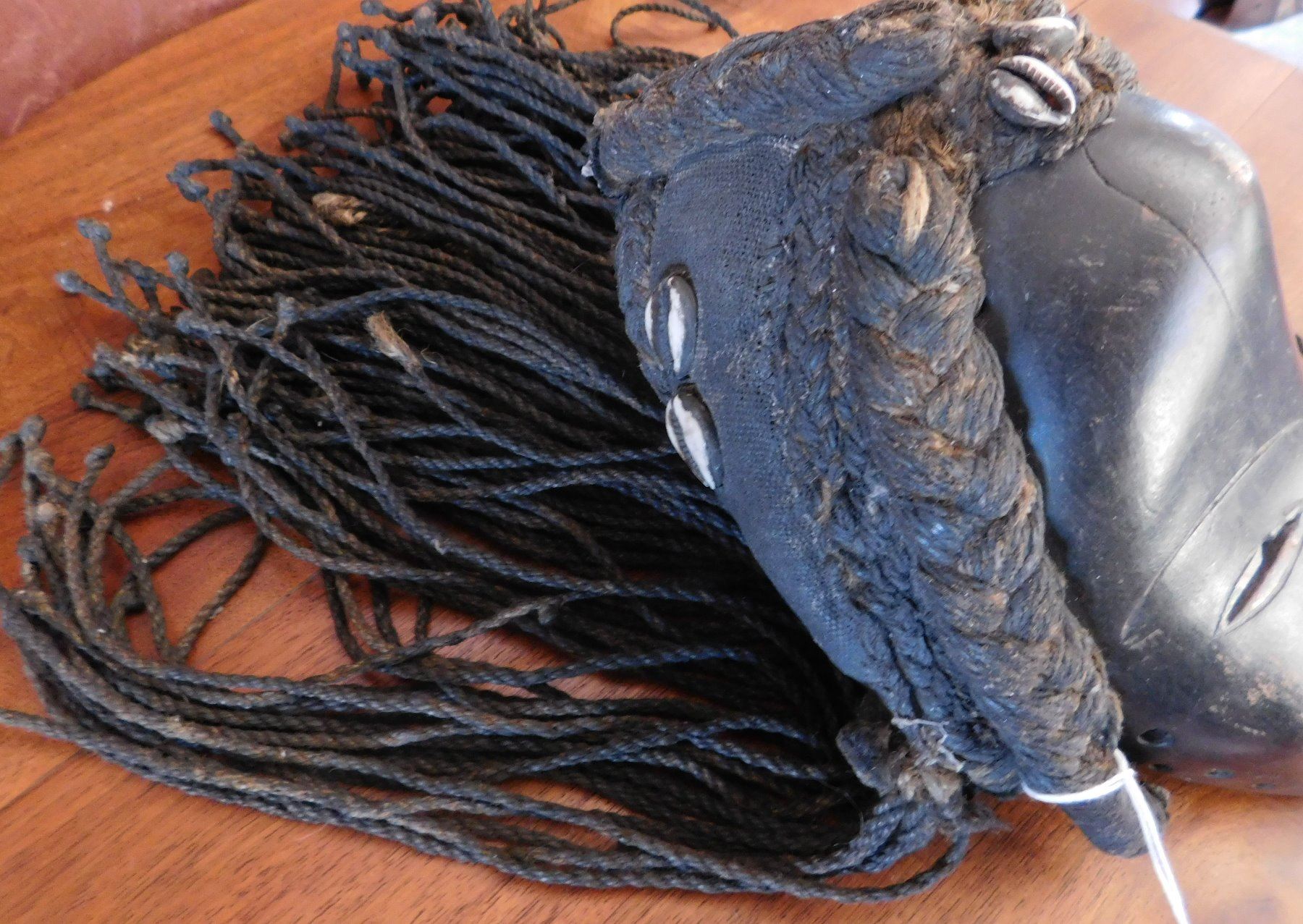 Dan Mask, 20th century item. Made of wood and raffia, the item measures 9" x 8". Ivory Coast. Condition: Wear, danced, see images. Shipping: $25.50 w/insurance and signature.