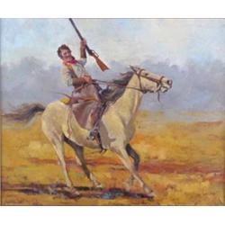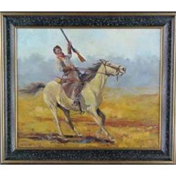 Dan McCaw. (b.1942) (California) Oil on Board. Cowboy. 21" x 25". signed lower right. Est $4,000 - $5,000.