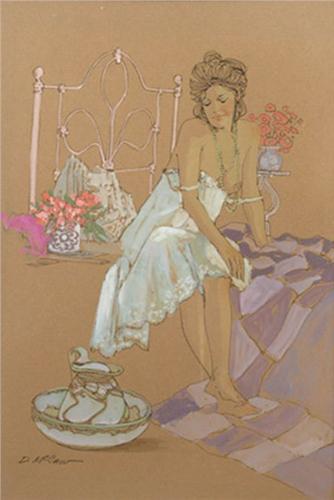 Dan McCaw (b. 1942). “Victorian Women”. Pair of Mixed Medium Drawings. Each is 14” x 11”, oval. New frames. (est $800–1,200)