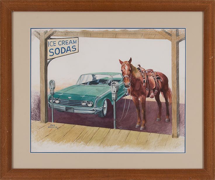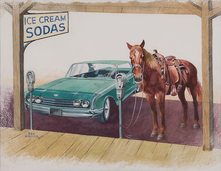 Dan Muller (1889-1977). Ice Cream Sodas. 17" x 22 ½" watercolor & gouache. Signed lower left. Provenance: The S. George and Helen Binson Estate, donated to the Cheyenne Frontier Days Old West Museum, Cheyenne, WY.