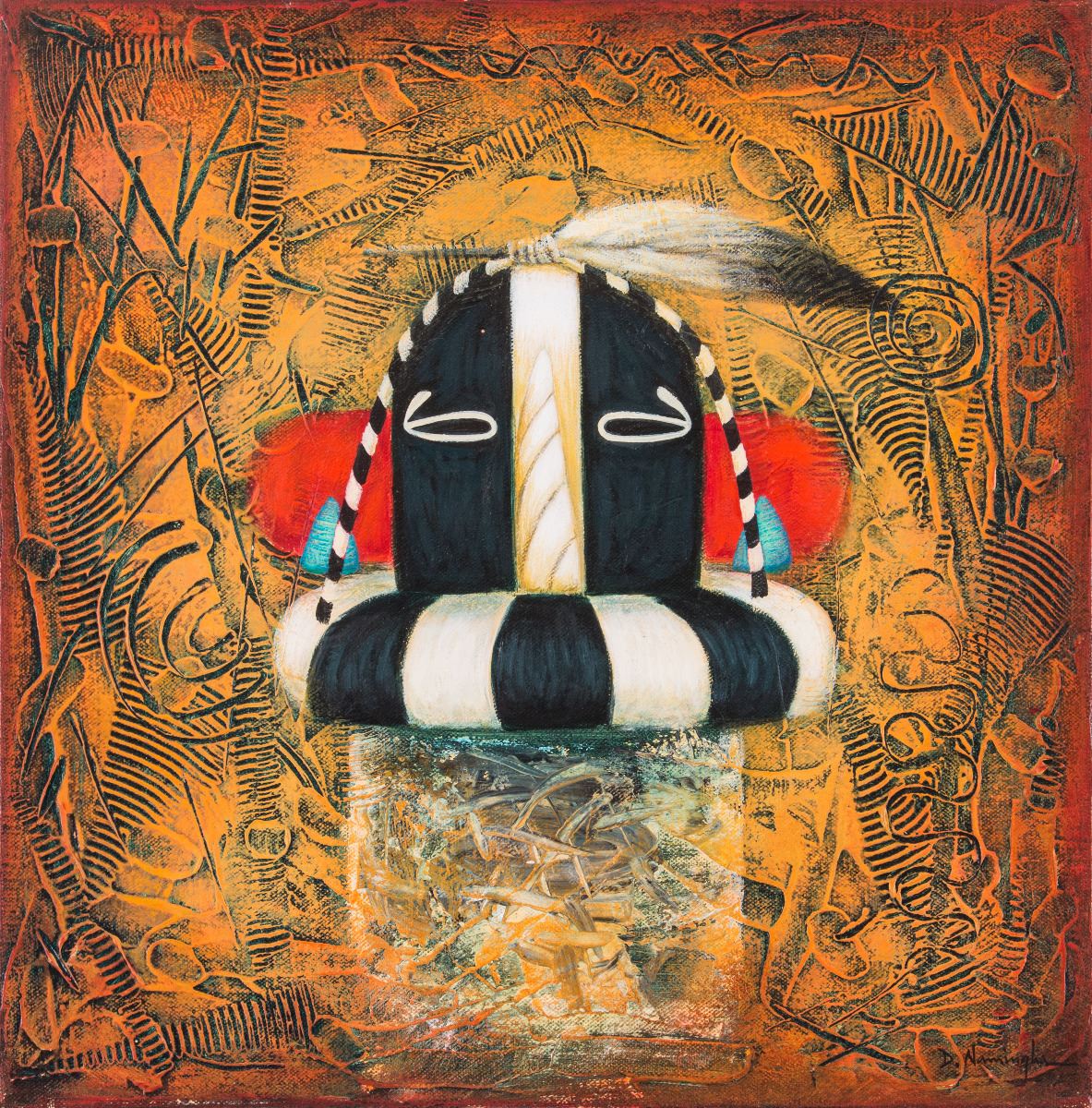 Dan Namingha (1950 - ). Kokopelli Flute Player. 14" x 14" oil on canvas, gallery wrapped. Signed lower right. Verso: Titled, signed and dated '10.
