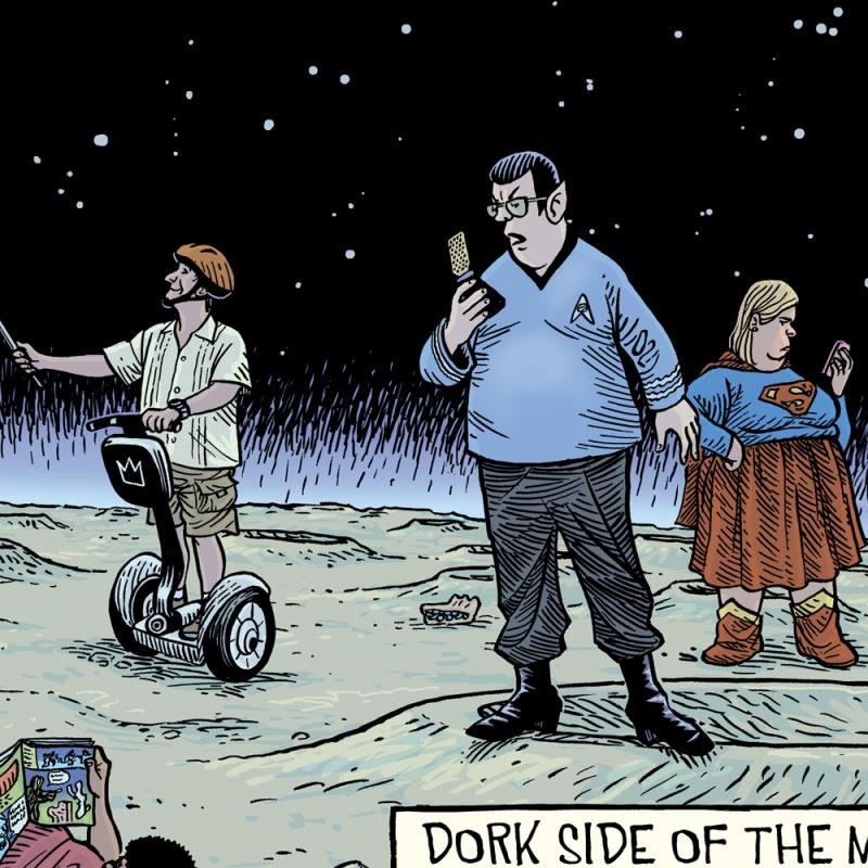 "Dork Side" is a limited edition giclee on paper by Dan Piraro, creator of the critically acclaimed and award winning comic strip, Bizarro! This piece is numbered and hand signed by the artist and includes aletterof authenticity. Measures approximtely 8" x 15" (image).