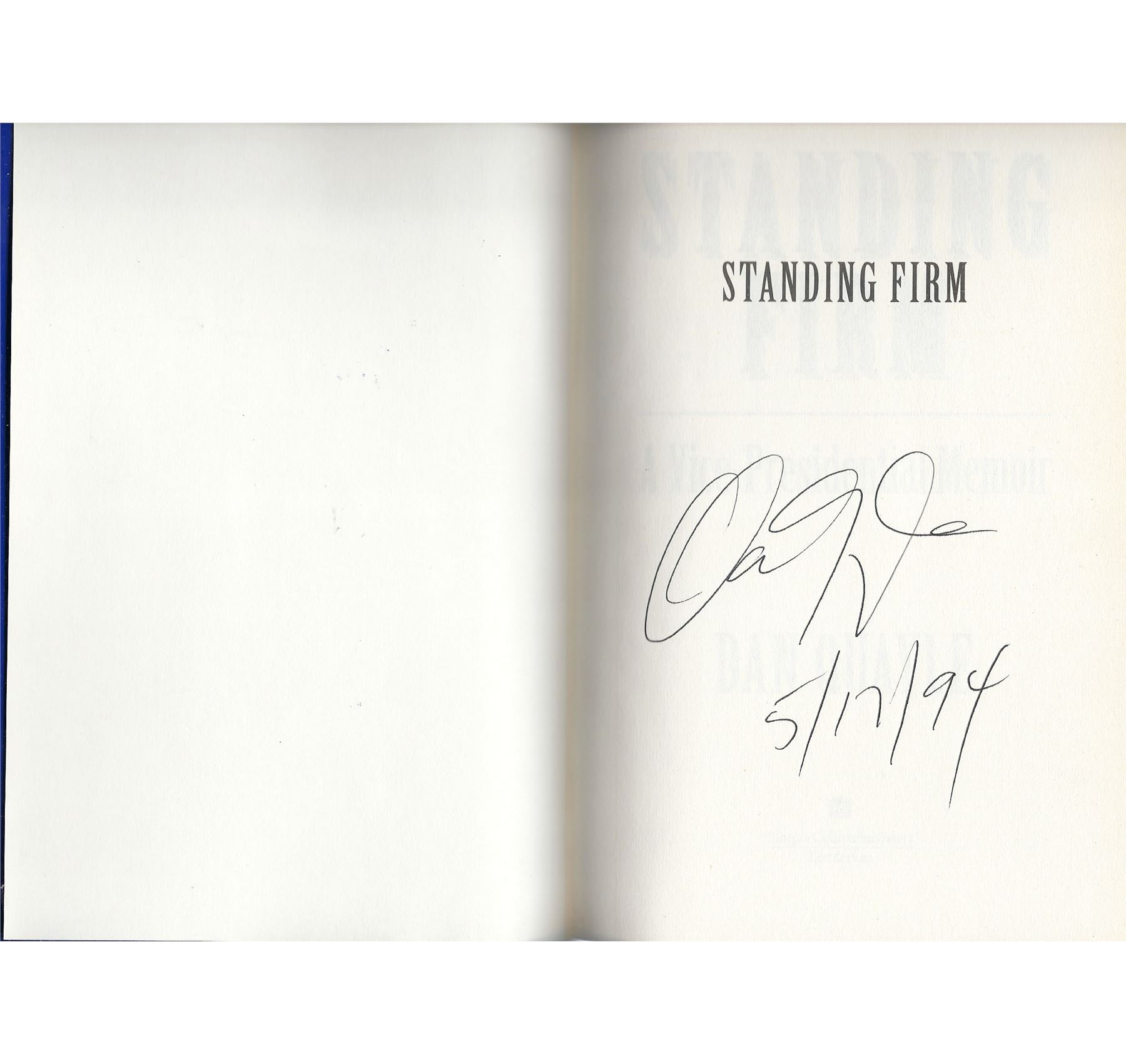 Standing Firm signed book autographed by Dan Quayle. Book is inscribed 5/17/1994