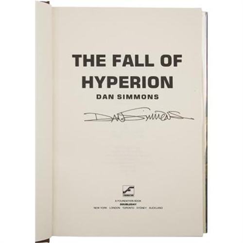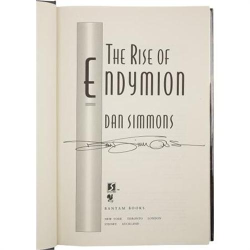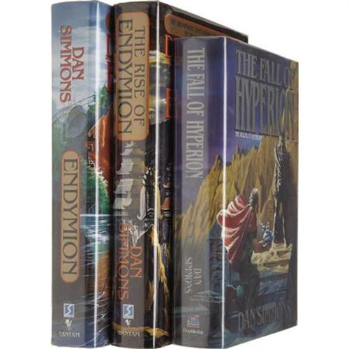 <B>Dan Simmons: Three Signed Books of the Hyperion Series.</B></I> Includes the following:<BR><B><I>The Rise of Endymion.</B></I></B></I> (New York: Bantam Books, 1997), first edition, 579 pages, gray cloth/blue boards, 8vo, dust jacket. Condition (book/ dj): as new/ as new.<BR><B><I>Endymion.</B></I></B></I> (New York: Bantam Books, 1995), first edition, 468 pages, blue cloth on orange boards, 8vo, dust jacket. Condition (book/ dj): as new/ as new.<BR><B><I>The Fall of Hyperion.</B></I></B></I> (New York: Doubleday, 1990), first edition, 517 pages, brown cloth on maroon boards, 8vo, dust jacket. Condition (book/ dj): fine/ fine.<BR><BR><b>Shipping:</b> Books & Catalogs (<a target="_blank" href="http://www.heritageauctions.com/common/shipping.php">view shipping information</a>)