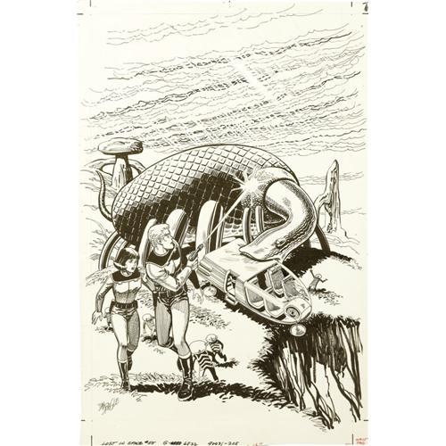 Tim and Tam face "the Menace of the Metal Eaters" in this thriller. Dan Spiegle drew this pen and ink alternative version of the painted cover that appeared on this issue. The image area of the cover is 10.5" x 15", and the art is in Excellent condition. <I>From the Random House Archives. </B></I><BR><BR><b>Shipping:</b> Small Flat (<a target="_blank" href="http://www.heritageauctions.com/common/shipping.php">view shipping information</a>)