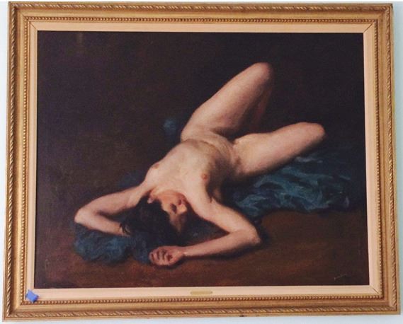 Dana Ripley Pond (American 1881-1962) lived a long time and established himself as one of the most successful and prolific artist's of his day . His works remain in important Collections throughout the United States and occasionally appear at the great Auction Houses in NY, where his portraits and landscapes are best known . Nudes, like this stunning example , are rare and often fetch much higher prices. This Original Oil 35x45" has been in a private Collection since that 1960's. The condition is average , as the canvas shows some wear from age.