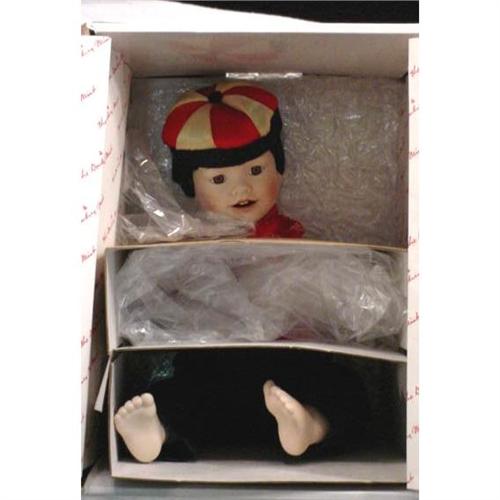 "Di Di" from The Danbury Mint by Bruce Hsieh. Porcelain head, hands, and feet. 1993. 10 inches tall in original box and packaging. Mint condition. Box measures 9" x 12" x 5" and weighs 3 lbs 2 oz. [81]
