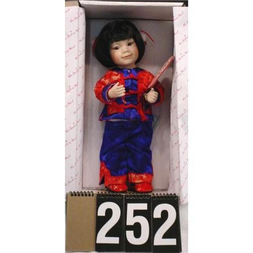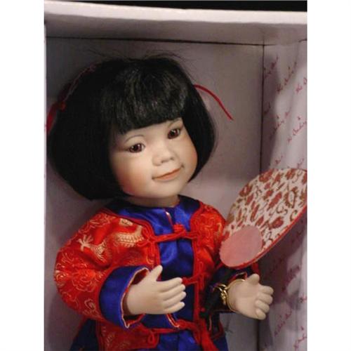 From the Danbury Mint, Pao-Pao by Bruce Hsieh. Porcelain head, hands, and feet with cloth body and is13 inches tall, 1993. Original box in perfect mint condition. Box measures 15" x 8 " x 6" and weighs 2 lbs 7 oz. [81]