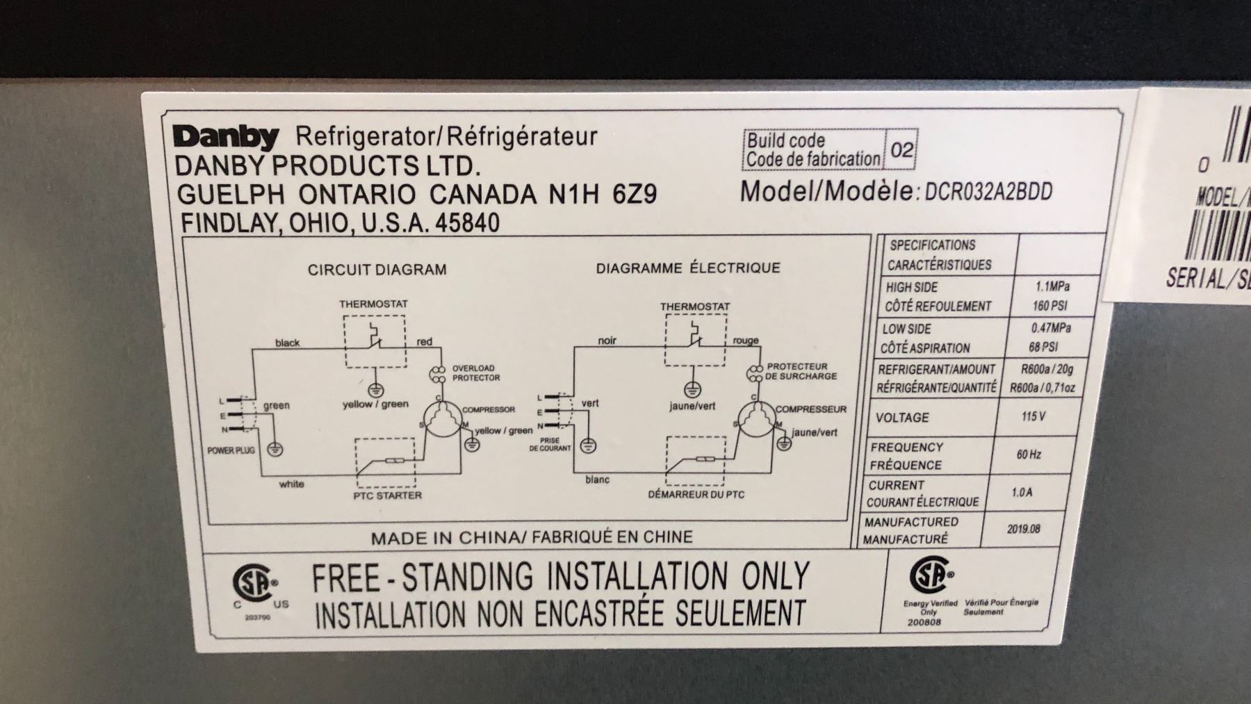 Danby Designer Bar Fridge Model: DCR032A2BDD