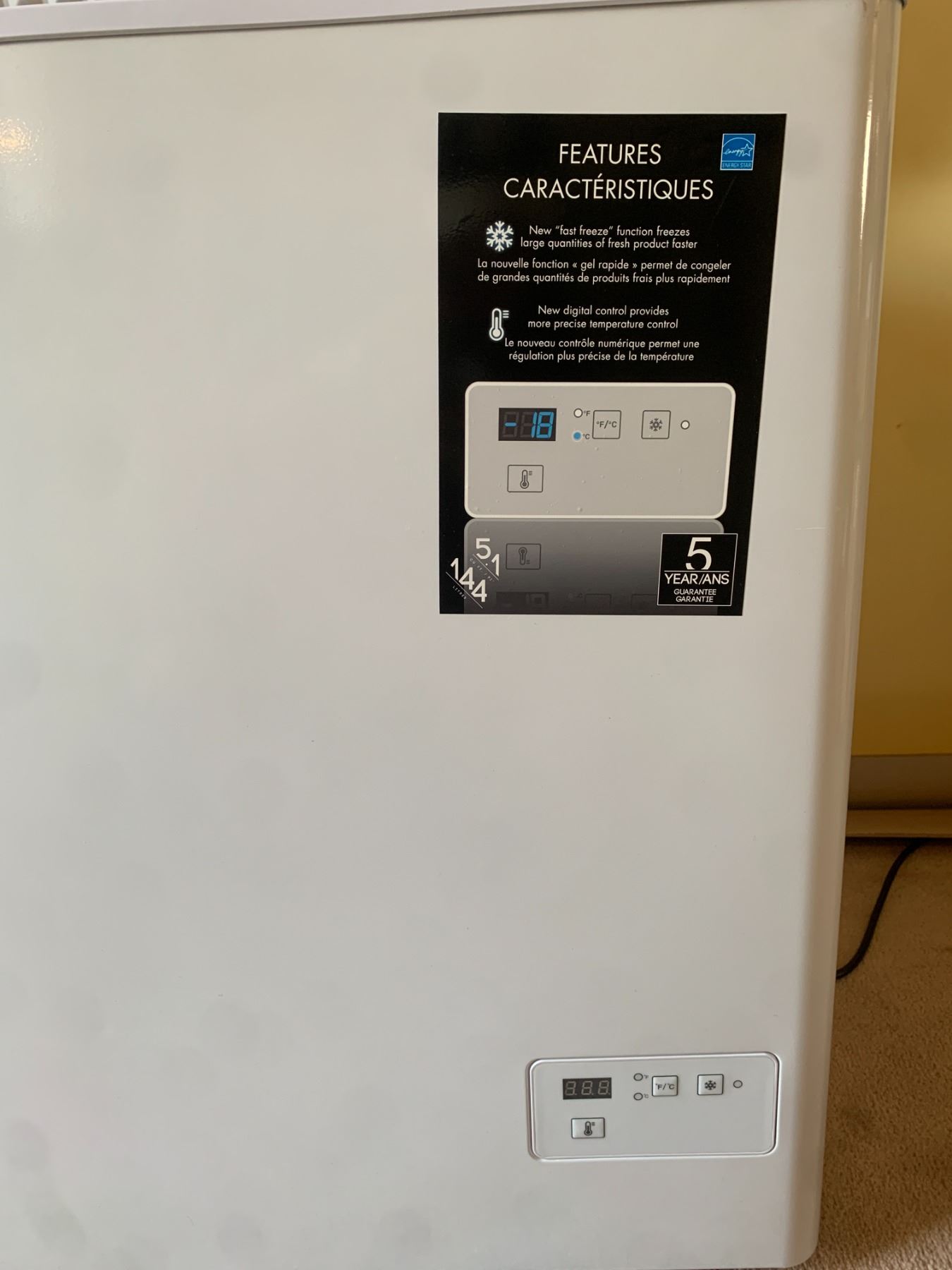 Danby Digital Control Deep Freeze 33" x 21" x 32", 5.1 cu ft, 144L