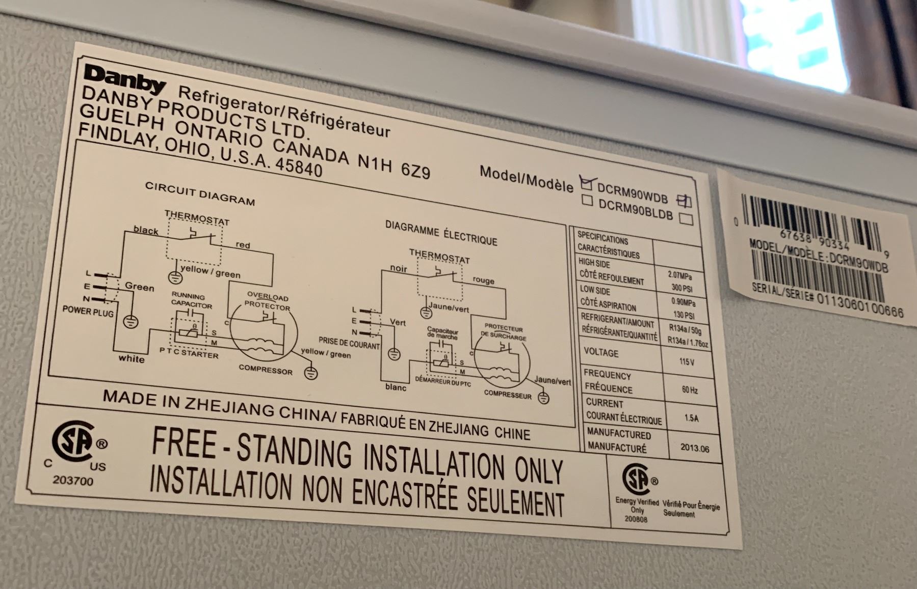 Danby Mini-Fridge (Model No. DCRM90WDB)