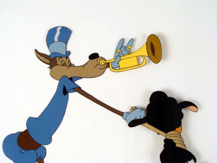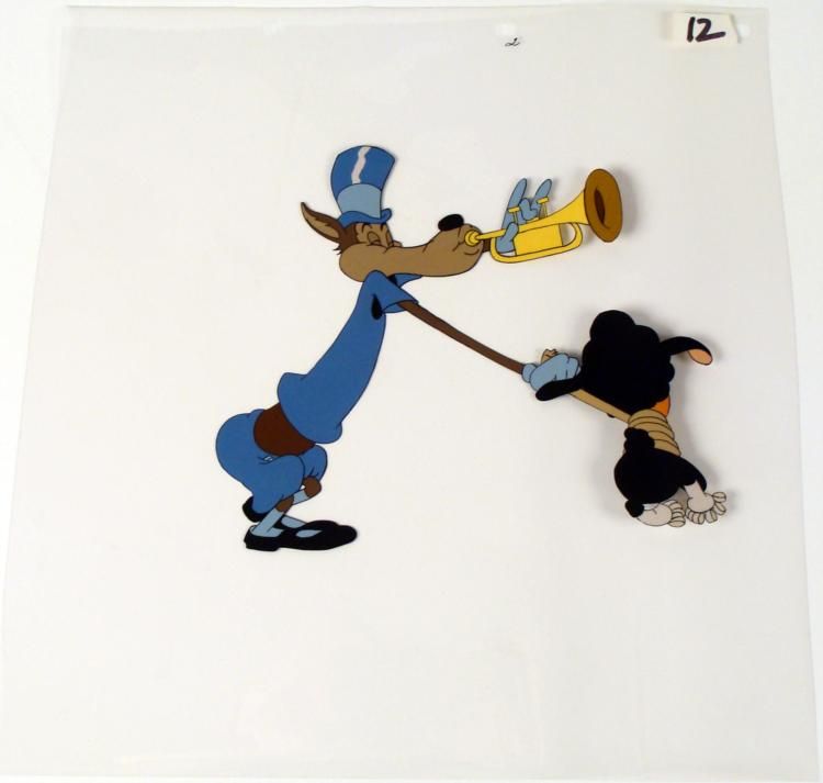 This is an original animation cel from the production of a Three Little Pigs animated cartoon. * * * * Dance piggy, dance!!! * * * Medium: Hand painted acetate cel with printed backgroundCel size: 13 x 14 inchesDetails: Numbers, top of celCondition: Very good; it has been stored.