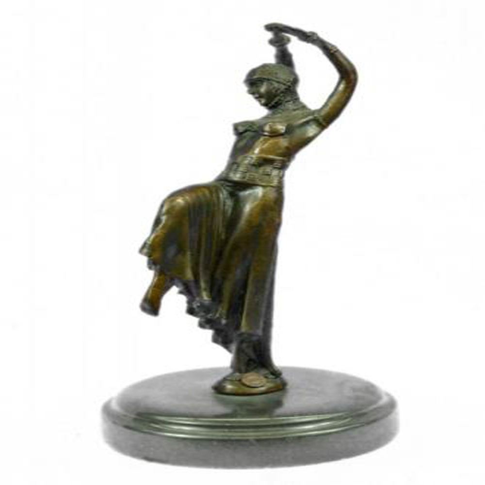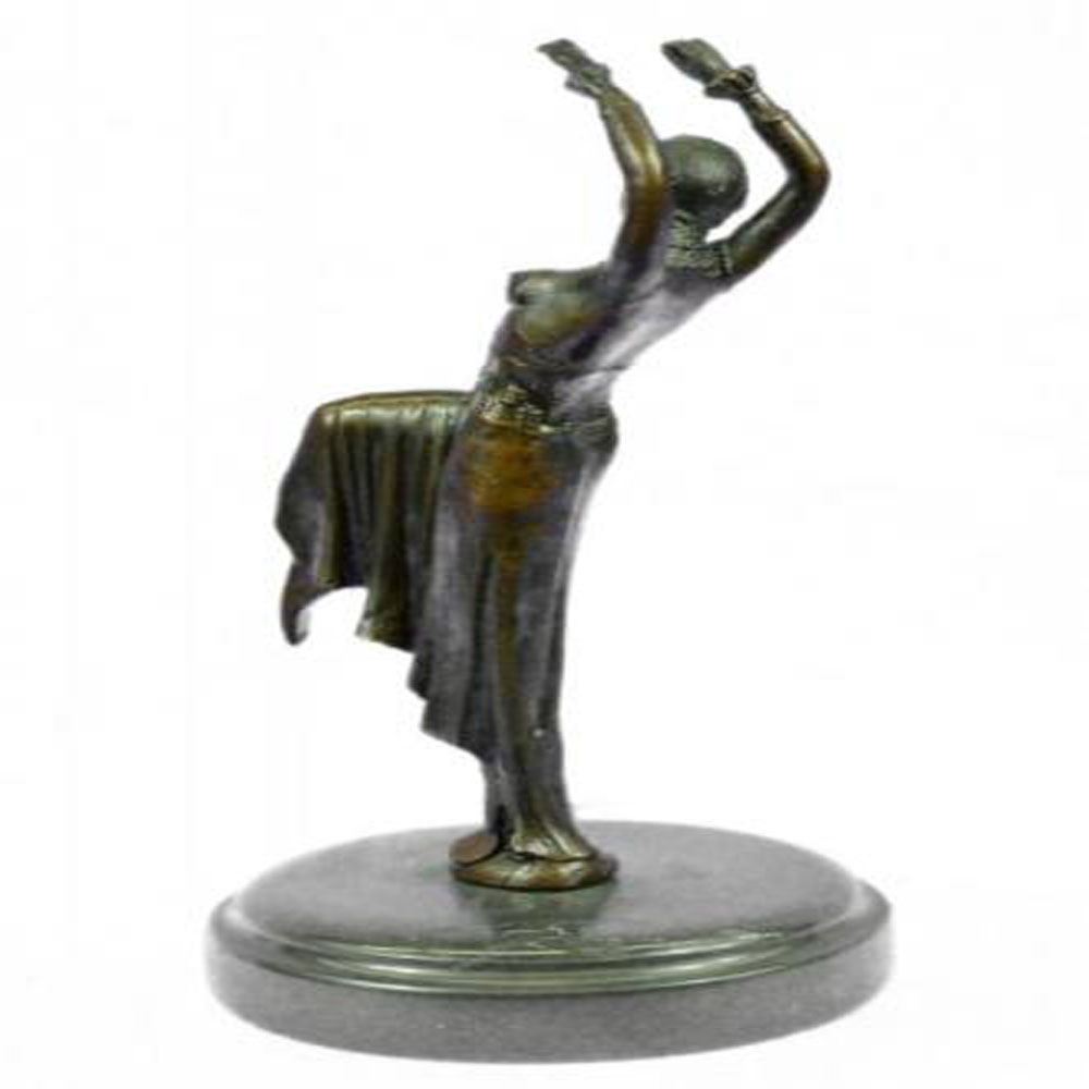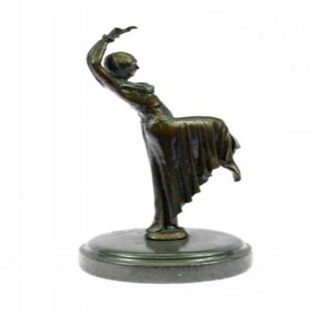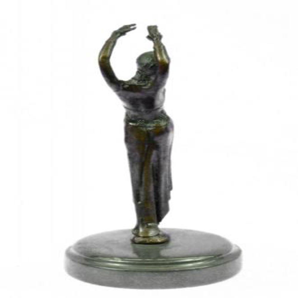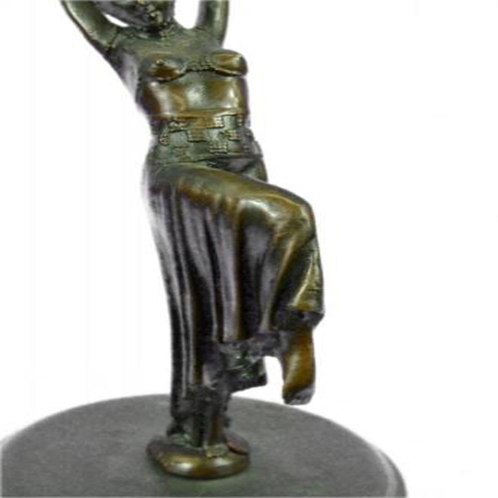 The brown flesh tones are actually the amazing applications of a patina blend over bronze. This bronze dancer is using the lost wax method and has a patina blend which will be fused into the bronze to last for generations. This bronze sculpture was captured using the age-old method of lost-wax casting and stained with a brown patina for preservation and mounted upon a marble base. Dimensions: Height 10 X Width 5 inches. Weight: 5 LBS.