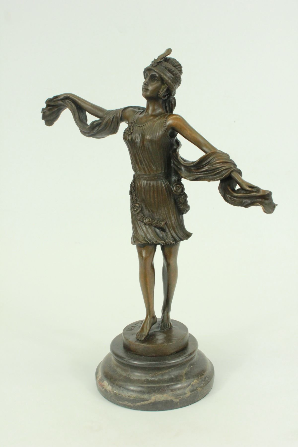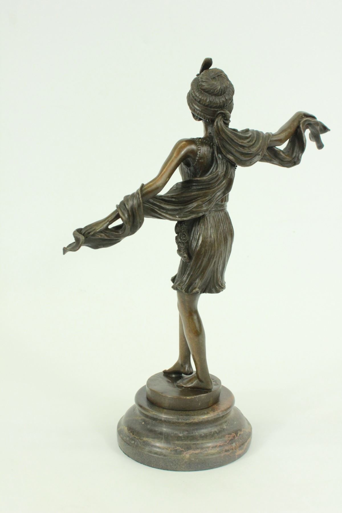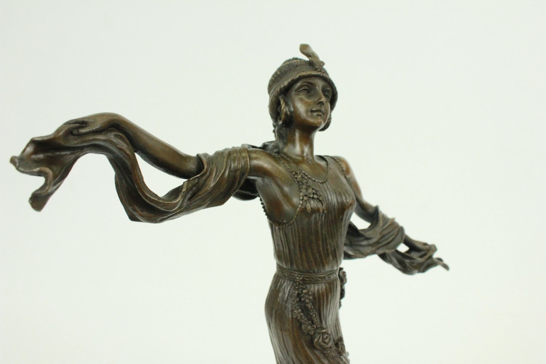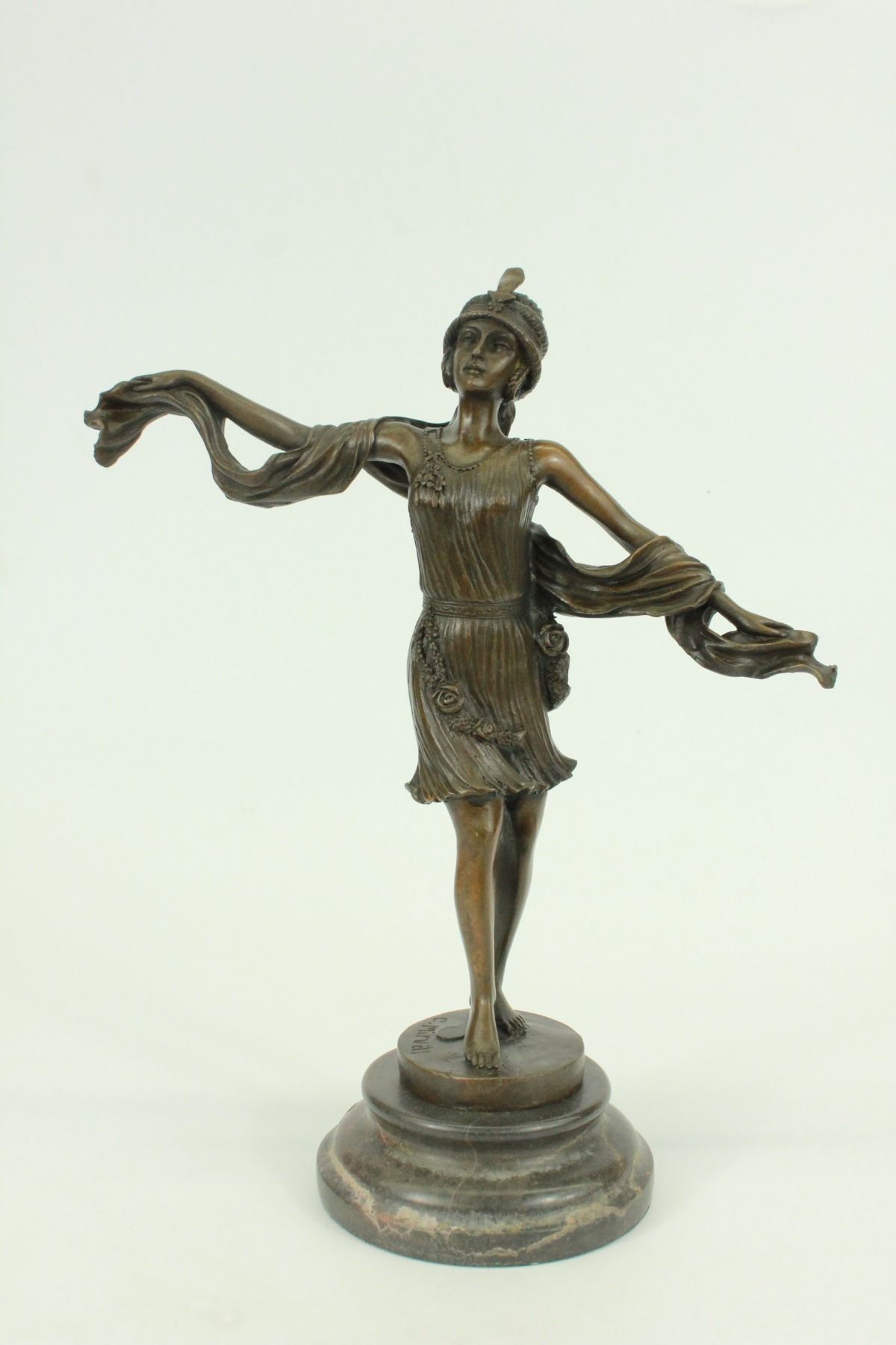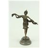 Any Fan Of The Roaring 20’S, Jazz And F.Scott Fitzgerald Will Adore This Stunning Flapper. They Were Considered To Be The New Breed Of Young Women. The Troublesome Youth Flaunted Unacceptable Behavior. Unacceptable Being Smoking, Drinking, Sex And…(Gasp) Driving. The End Of World War I Gave Birth To These Party Loving, Swing Dancing, Free Spirits. This Demure Flapper Can'T Help But To Do The Charleston Even Though She Has Already Kicked Off Her Heels For The Night. Her Bobbed Hair Curls Out From Beneath Her Roaring 20'S Hat, Which Was A Popular Style Of The Jazz Obsessed Era. Her Dress Shimmies As She Moves. It Is A Bright Yellow Patina But The Hemline Is A Pinkish Red. A Matching Yellow Sash Loops Around Her Arms. This Sculpture Was Cast Using The Lost Wax Method And Mounted On A Marble Base. Bronze Dimensions With Marble Base: Height 13 X Width 10 inches. Weight: 8 Lbs.Please Note: This is a reproduction bronze sculpture from the original molded and signed. This featured bronze sculpture is a recast after the original, and has been done recently. This 100% bronze sculpture is an abstract piece certain to be a conversation piece.Please Note: This is a reproduction bronze sculpture from the original molded and signed. This featured bronze sculpture is a recast after the original, and has been done recently. This 100% bronze sculpture is an abstract piece certain to be a conversation piece.