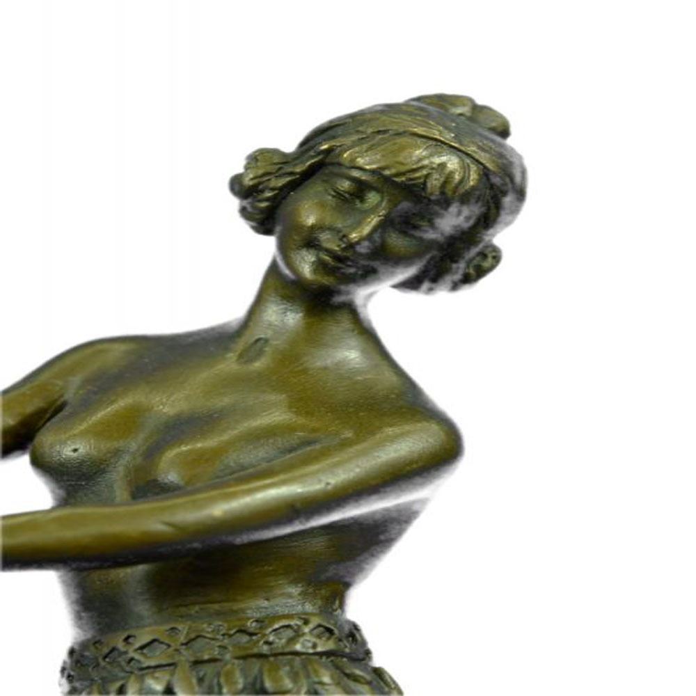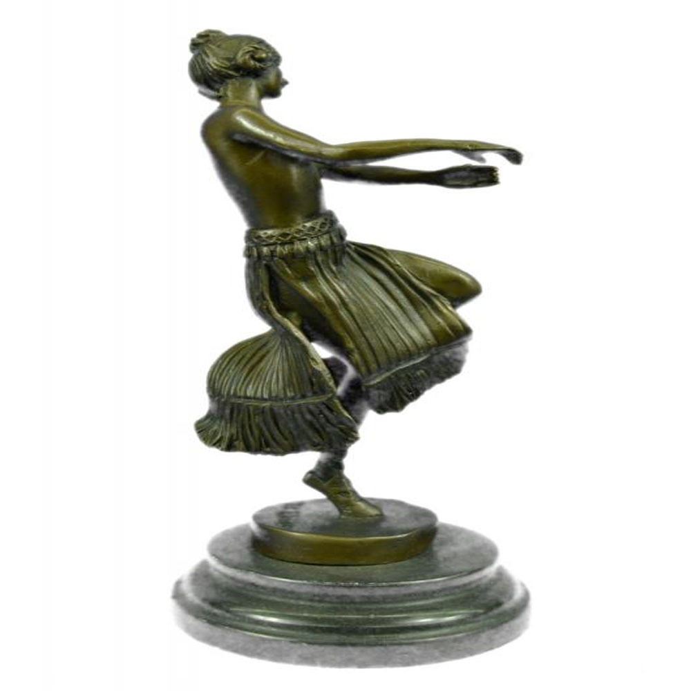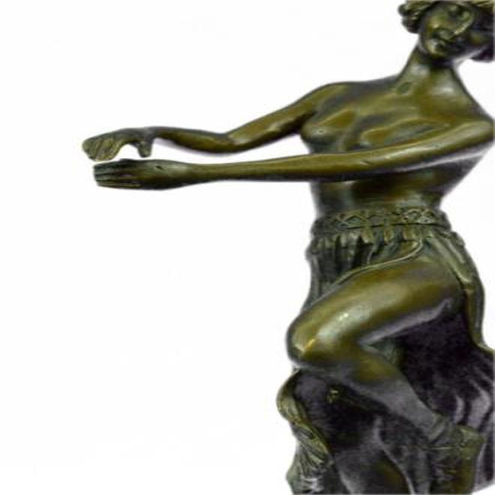 Feeling of motion and excitement conveyed by dancers Costome, gesture and facial expression. Smooth quality chasing of figure. This 100% Bronze Sculpture was crafted using the lost wax method. It is set on a marble base. Bronze Dimensions with Marble Base: Height 10 X Width 4 inches. Weight: 4 LBS.
