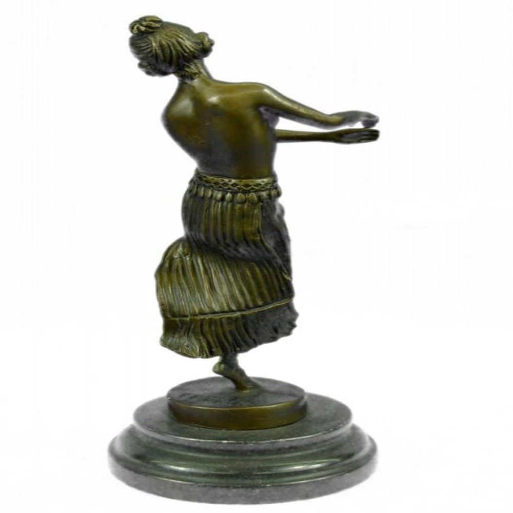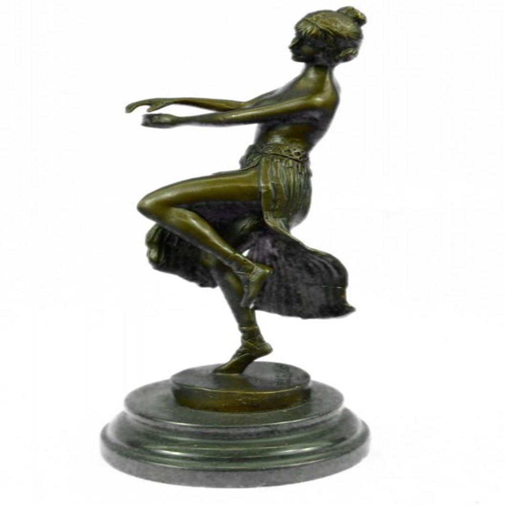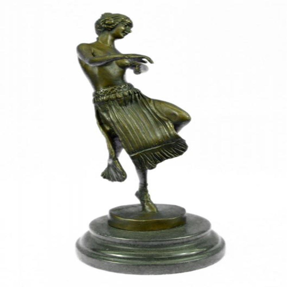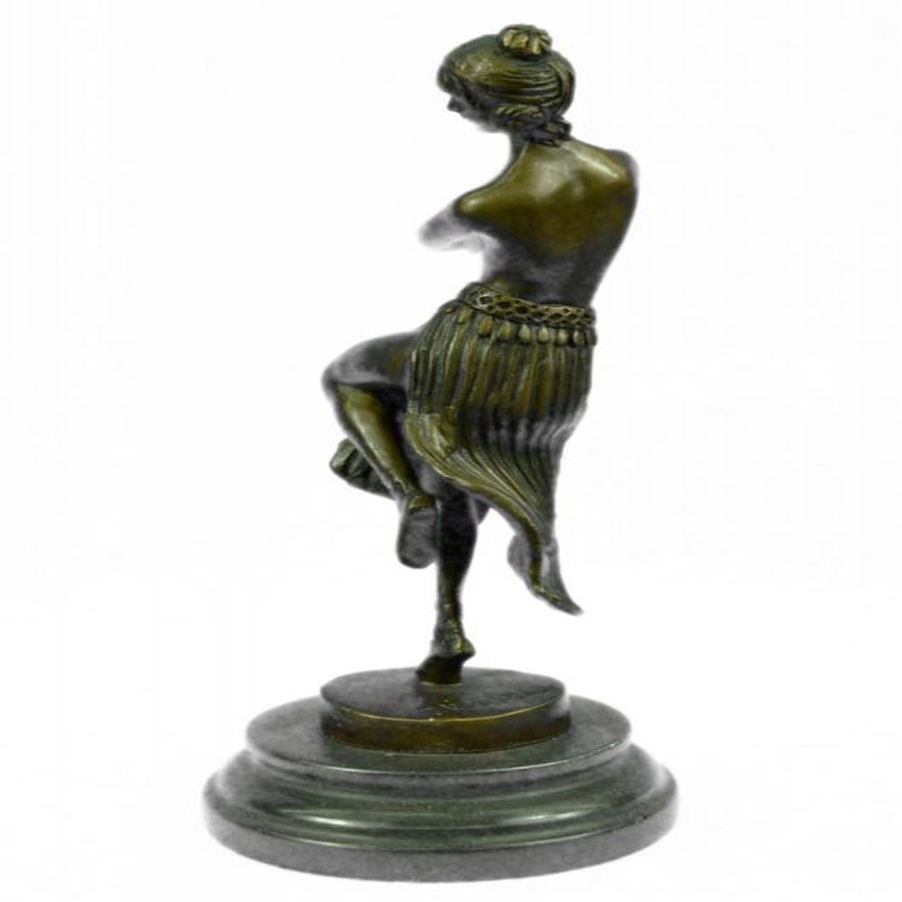 Feeling of motion and excitement conveyed by dancers Costome, gesture and facial expression. Smooth quality chasing of figure. This 100% Bronze Sculpture was crafted using the lost wax method. It is set on a marble base. Bronze Dimensions with Marble Base: Height 10 X Width 4 inches. Weight: 4 LBS.