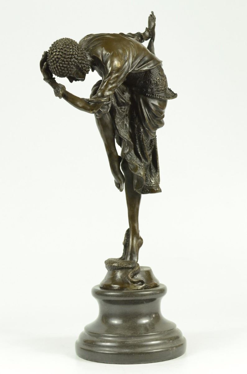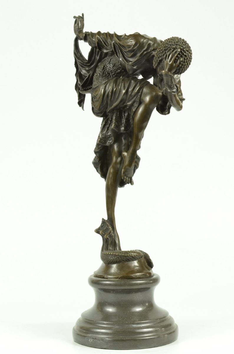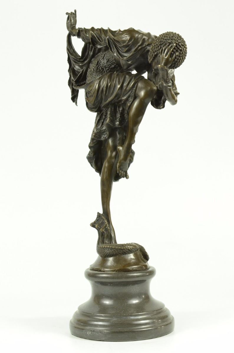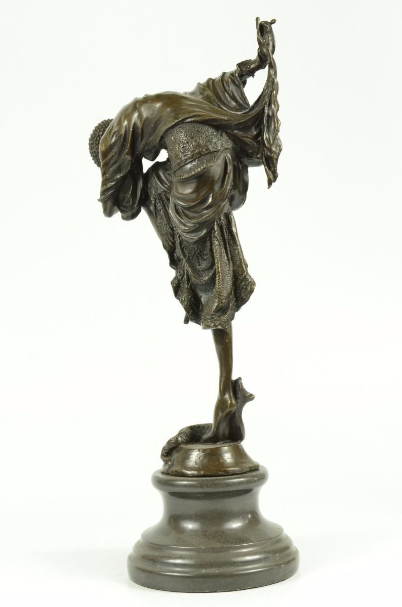 The Exemplary Depictions Of Dancers, Influenced By Russian And French Culture, Are A Specialty Of The Artist Dh Chiparus. This Woman Is Wearing A Creatively Designed Costume Equipped With A Skirt And And A Studded Cap. Here She Poses While In A Fancy Dance Position. This Sculpture Was Crafted Using Using The Lost Wax Method. It Rests On A Black Marble Base. Bronze Dimensions With Marble Base: Height 17 X Width 9 inches. Weight: 12 Lbs.