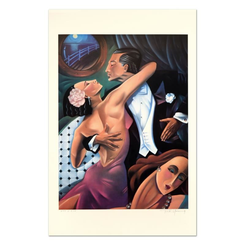 "Dancer (Tango)" is a limited edition lithograph on paper by Ted Young, numbered and hand signed by the artist. Measures approx. 23" x 35" (with border), 20" x 28" (image).