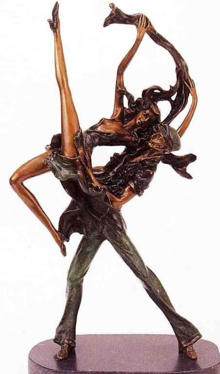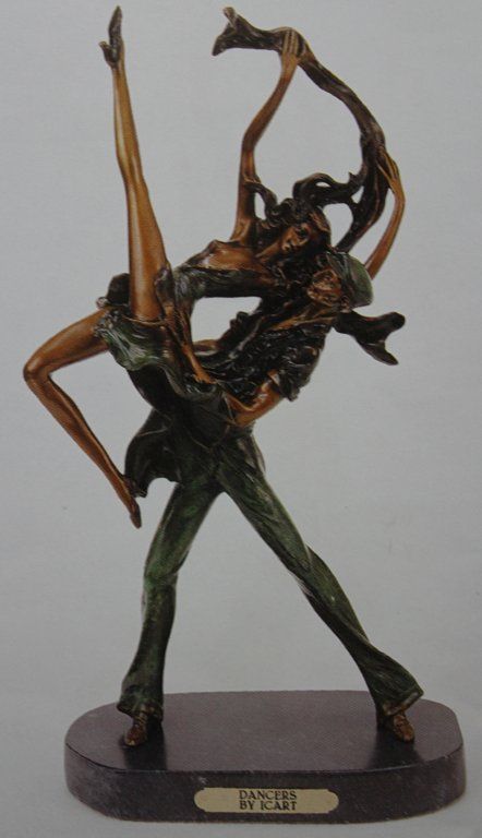 "Dancers" Bronze Sculpture Inspired - Icart - Beautiful Color Patina - Mounted On A Fine Italian Marble Base - Beautifully Detailed - Signed - Mint Condition - 22"H X 10"W - Lost Wax Cast Bronze