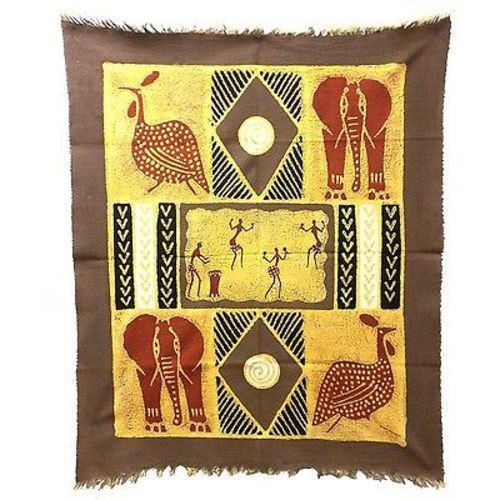 Dancers and Animals Batik in Gray/Red - Tonga Textiles **|**|** Batiked and painted by hand #ZXFL08GR-580032