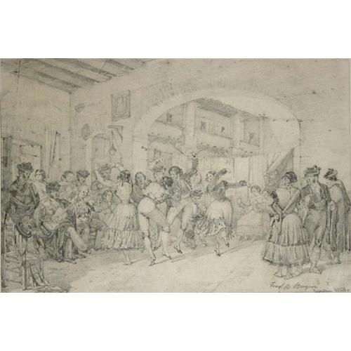 Fine pencil on paper drawing by Spanish artist Joaquin Dominguez Becquer. It is signed on lower right, dated 1848, and inscribed Sevilla. Joaquin Dominguez Becquer came from a family of noted painters, painted in the romantic genre tradition and was official painter to the court of Spain (Isabel II). His works sell in major international auction houses and command high prices. One of his paintings, The Seville Fair, is part of the Thyssen-Bornemisza collection. Please ask questions, request additional photos and shipping costs before buying.