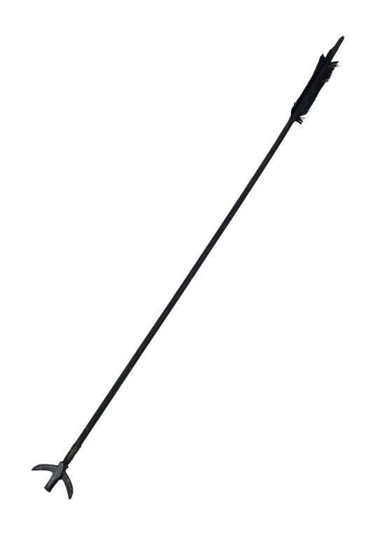 Made of wood with a resin arrow head and hand painted fletching. Broken on set.