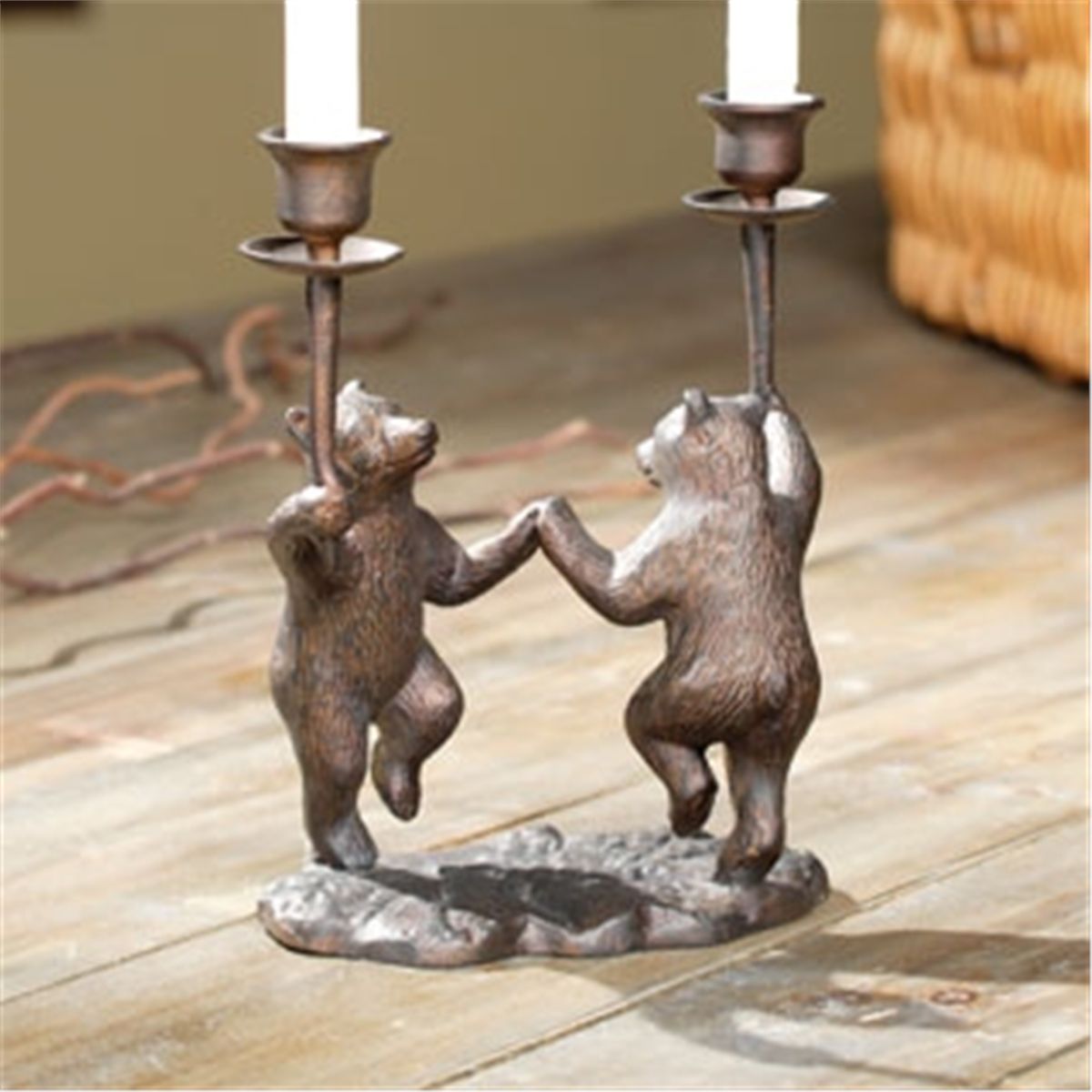 Dancing Bears Taper Candleholders - 9"H 8"W 4.5"D - Aluminum