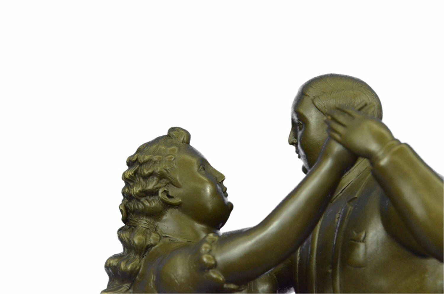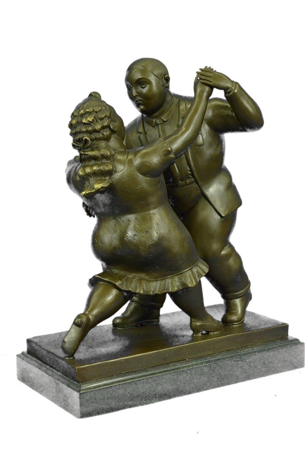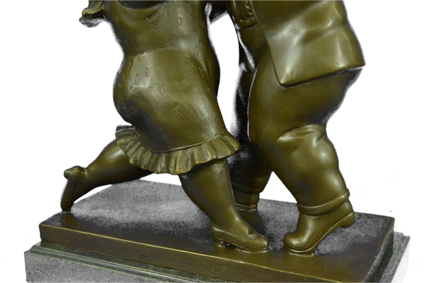Holding his girl tight and leading her hand in hand they are lost in a deep intimate dance and forget the world is watching. Enjoying the music that is offered they dance the night away. With extreme joy and happiness they both are smiling and soaking up the wonderful memories they are making. They are synchronized in step and they cross leg over leg without missing a step. His hand grasps his ladies waist tight while his other hand gentle holds her hand. They both are fully dressed wearing traditional black tie affair clothes. This is a beautiful sculpture of abstract bronze. This sculpture was cast using the Lost Wax Method and has a two tone brown patina. Bronze Dimensions with Marble Base: Height 13 X Width 10 Inches. Weight: 20 LBS. Inventory: 30100B65403