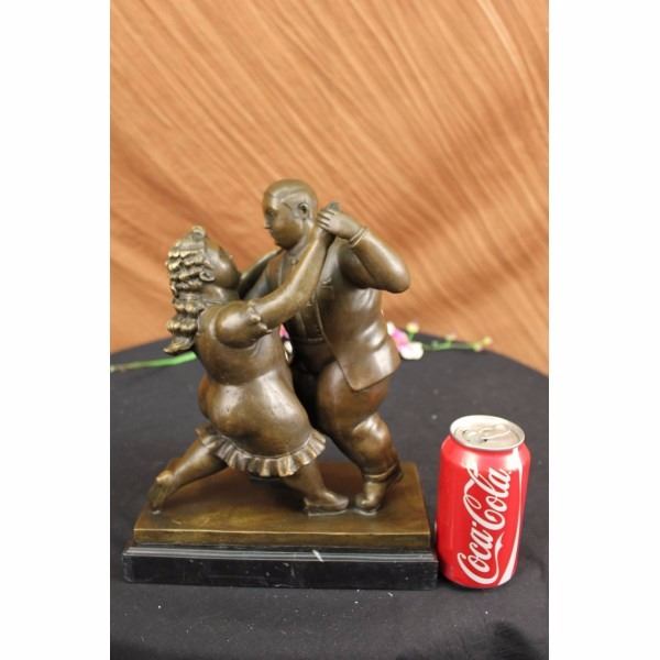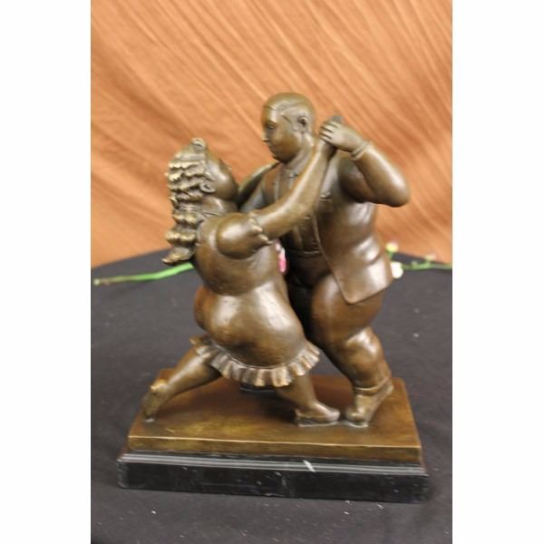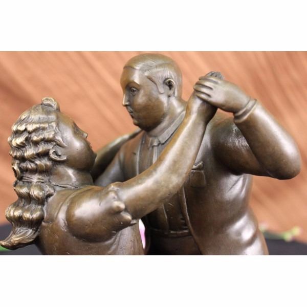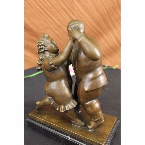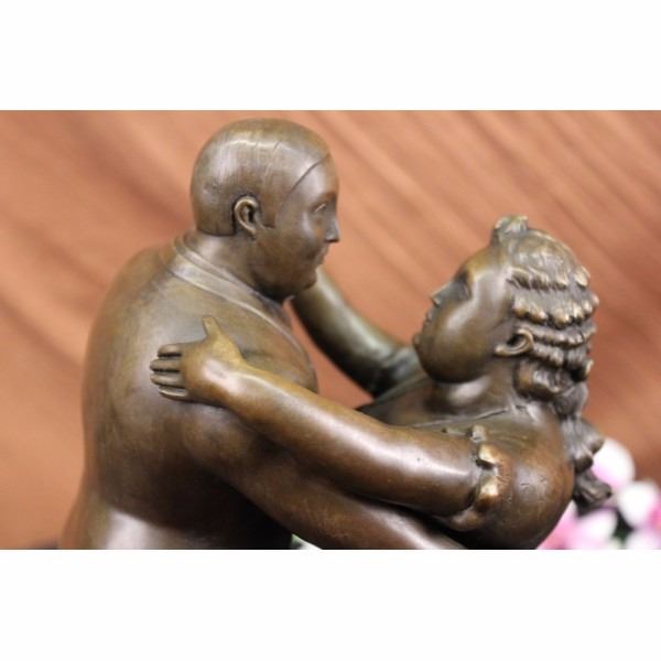 Holding his girl tight and leading her hand in hand they are lost in a deep intimate dance and forget the world is watching. Enjoying the music that is offered they dance the night away. With extreme joy and happiness they both are smiling and soaking up the wonderful memories they are making. They are synchronized in step and they cross leg over leg without missing a step. his hand grasps his lady’s waist tight while his other hand gentle holds her hand. They both are fully dressed wearing traditional black tie affair clothes. This is a beautiful sculpture of abstract bronze. This sculpture was cast using the lost wax method and has a two tone brown patina. Bronze dimensions with marble base: height 13 X Width 10 inches. Weight: 20 lbs.