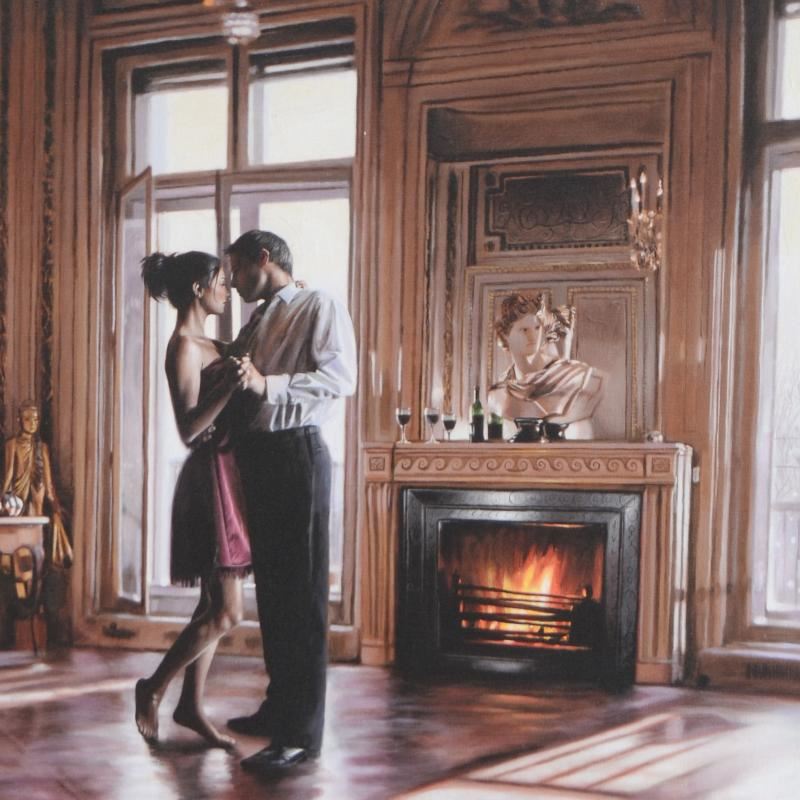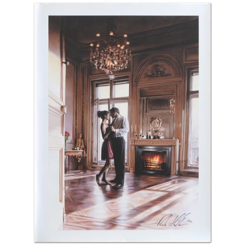 "Dancing by the Fire" is a limited edition hand-embellished giclee on canvas, numbered and hand signed by Rob Hefferan! Includes Certificate of Authenticity! Measures approx. 20" x 28" (image).