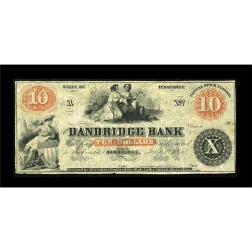 <B>Dandridge, TN- Dandridge Bank</B></I> $10 July 1, 1854 Garland 282 G8b<BR> A very scarce remainder which is listed as an R-10 (Garland uses a scale of 1-15) in Garland. <B>Very Fine.</B></I><BR><BR><b>Shipping:</b> Coins & Currency (<a target="_blank" href="http://www.heritageauctions.com/common/shipping.php">view shipping information</a>)