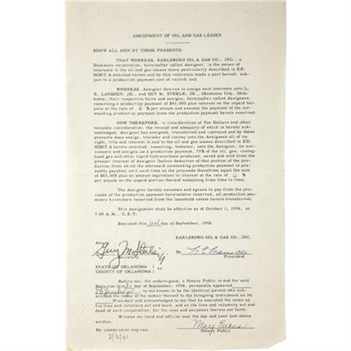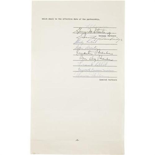 <B>Partnership Contract Signed by Dorothy Dandridge and Stanley Kubrick, With Portrait of Dorothy Dandridge.</B></I> A contract for a limited partnership signed by Dorothy Dandridge and Stanley Kubrick. There were several additional parties included in the partnership which also involved Doris Day and her husband Martin Melcher, who signed for them both. This lot also contains a framed portrait of Dandridge. The contract is in Very Good condition with light foxing in the lower left corner and staples were removed from the upper left corner. The frame no longer secures in the photograph, however, the photograph is in Excellent condition. <I>Accompanied by a COA from PSA/DNA.</B></I><B>Condition Report:</B> Normal signs of wear as appropriate with age. There is foxing in the lower left hand corner of the cover page, which holds the signitures. Once stappled at the upper left corner, the staples have been removed.<BR><BR><b>Shipping:</b> Flat Material, Small (<a target="_blank" href="http://www.heritageauctions.com/common/shipping.php">view shipping information</a>)