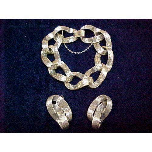 Danecraft was established in 1939 by Victor Primavera. The company produces sterling silver and vermeil jewelry. It is now known as the Felch-Wehr Company and markets under the name Danecraft. The earrings are clip-on and the bracelet's clasp is sturdy. The bracelet also has a safety chain as seen in image 3 and is marked as seen in image 4.