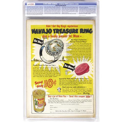 <B>Danger Trail #1 Davis Crippen ("D" Copy) pedigree (DC, 1950) CGC VF- 7.5 Off-white pages.</B></I> King Faraday, who later starred in the "I - Spy!" issues of <B>Showcase</B></I>, is among the characters in this mystery/intrigue title. This book has a Carmine Infantino cover and Alex Toth interior art. Overstreet 2006 VF 8.0 value = $775. CGC census 6/06: 1 in 7.5, 5 higher. <I>From the Crippen Collection.</B></I> <BR><BR><B>Important notice:</B> Heritage usually auctions material at the rate of 200-250 lots per hour. On some occasions eBay Live bid software or the Internet may not be able to keep up with the pace of the auction. We recommend placing a realistic absentee bid now as insurance to avoid disappointment. Occasionally the auctioneer may eliminate or reject an eBay Live bid, and the auctioneer may also reopen a lot after the close of the eBay live bidding (usually because we missed an audience bid), and may reject your bid even if it shows you as the winning bidder. By bidding via eBay Live, you agree that Heritage may award the lot to another bidder at its sole discretion under the circumstances described above or any other reasonable circumstances. Since eBay bids are not shown to us until we open the lot on the floor, we treat those bids just like floor bids. In most cases the floor responds before the eBay bid is presented to us, due to Internet lag time, so for consistency we have made it a policy that floor bids are always considered first over tie eBay live bids. Also please note that all Heritage lots purchased through eBay Live carry a 22.5% Buyer's Premium. Please make sure you read the Terms and Conditions before you bid. This lot is being auctioned in conjunction with a live floor auction by Heritage Auction Galleries. All final auction and invoice information will be supplied by Heritage Auction Galleries, and all other information should be considered preliminary. Lot:41001 <BR><BR><B>Winning Notification and Billing:</B> After the FINAL session in this auction is complete, Heritage will send e-mail and snail mail invoices. This process normally takes several days. All final auction and invoice information will be supplied by Heritage Auction Galleries, and all other information should be considered preliminary. <BR><BR>This auction will be conducted on a live auction floor and over the Internet through eBay Live. If you choose to place an absentee bid, please take a moment to <font color='#0000ff'><u><a href='http://pages.ebay.com/liveauctions/help/before/laabsentee.html'>learn how eBay Live absentee bidding works</a></u></font><font color='#000000'>