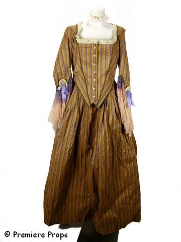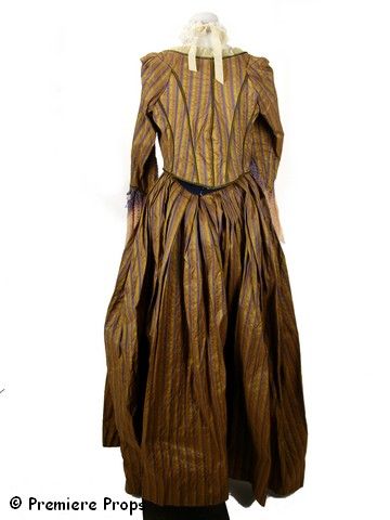 From New York Costume Designer Frankie Steinz: DANGEROUS LIAISON BROWN; Brown skirt with vertical blue and green stripes with matching bodice; White lace neck collar.
