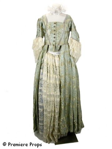 From New York Costume Designer Frankie Steinz: DANGEROUS LIAISON MARQUISE BLUE AND SILVER; blue satin skirt layered with a white lace; Silver bodice with long draping tail; white lace collar with dark jewels
