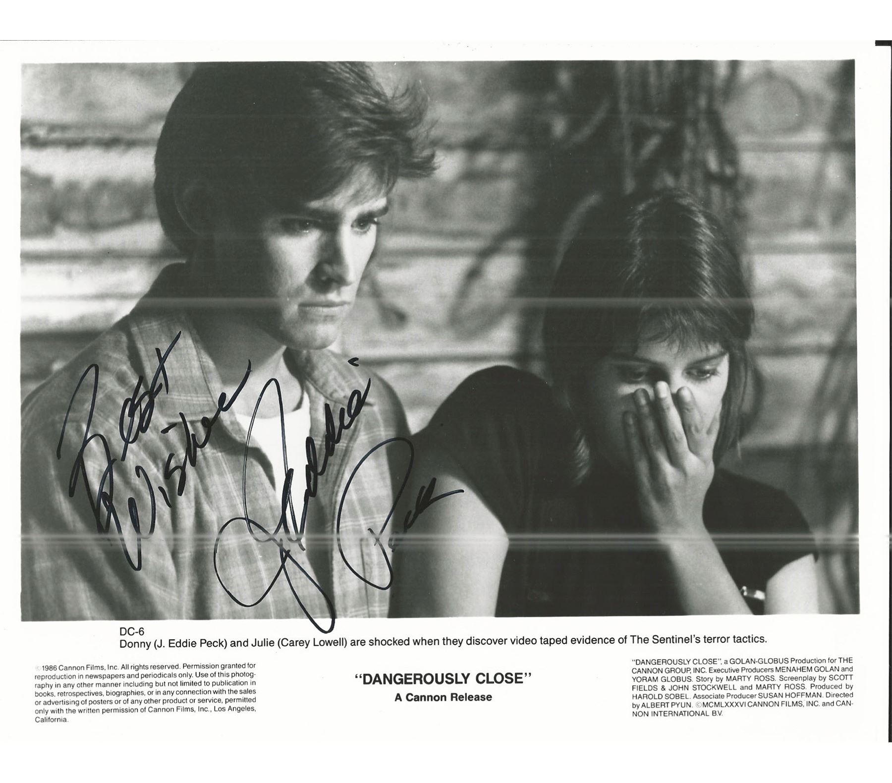 Dangerously Close Signed Movie Photo Autographed by Eddie Peck . 8x10 inches