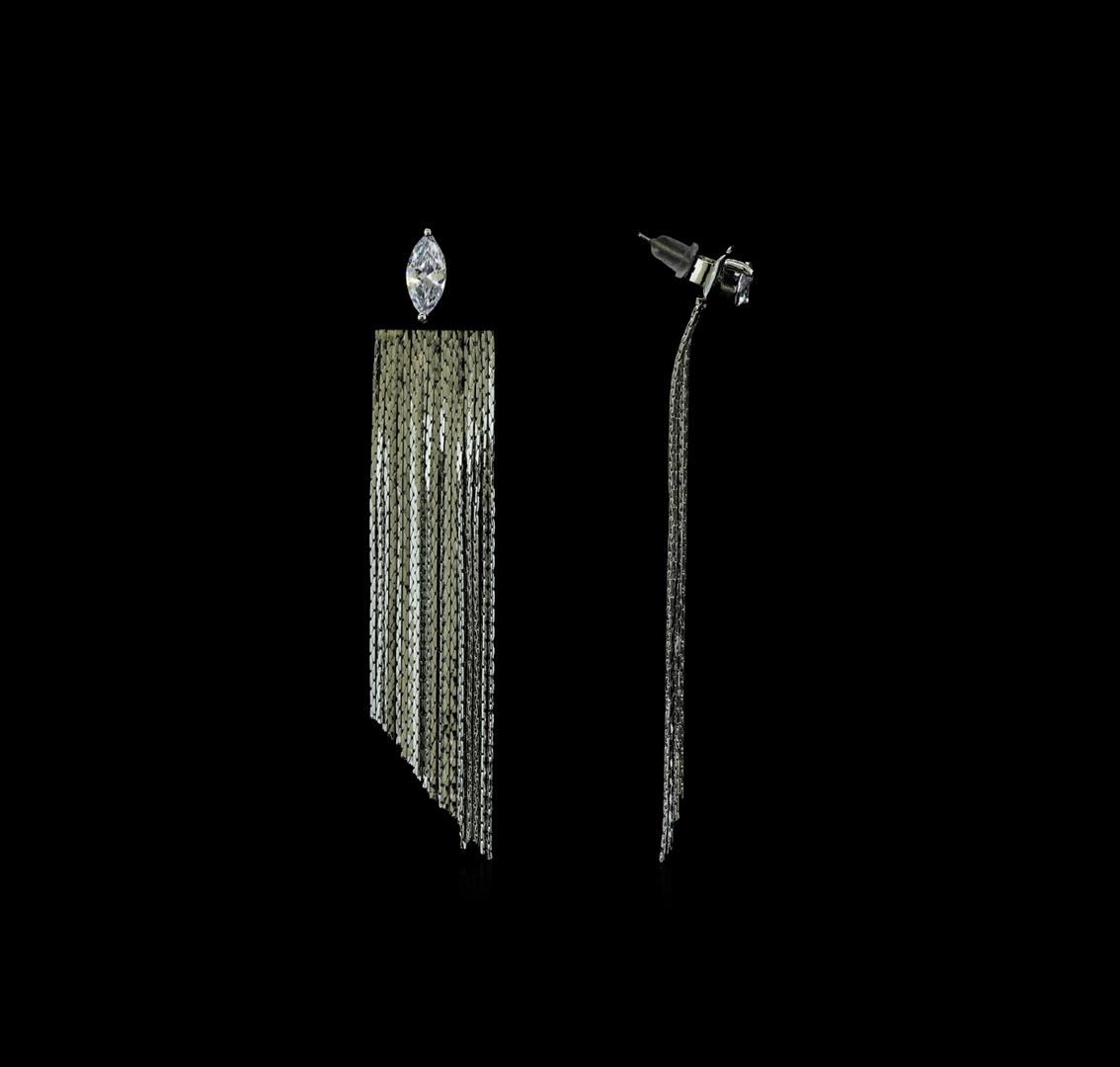 High end designer jewelry. Dangle Crystal Teardrop Earrings - Rhodium Plated. Rhodium Plated Post Set. Silver/ Clear. 3inches.