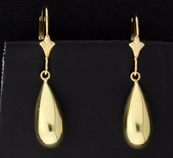 In 14K yellow gold they are 1 1/4 inches long. 1.5g