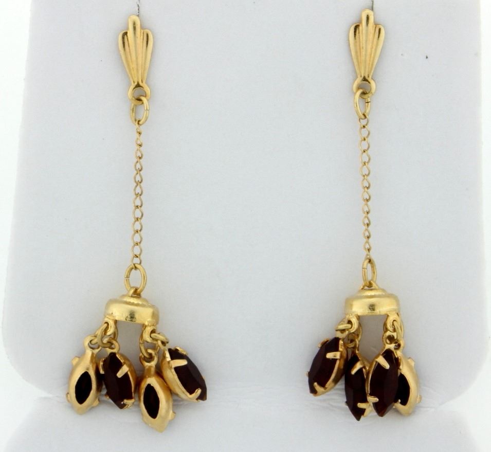 Beautiful 14k yellow gold dangle style earrings with four beautiful red marquise cut garnet gemstones in each earring. They measure 1 1/2" in length. 4.0g